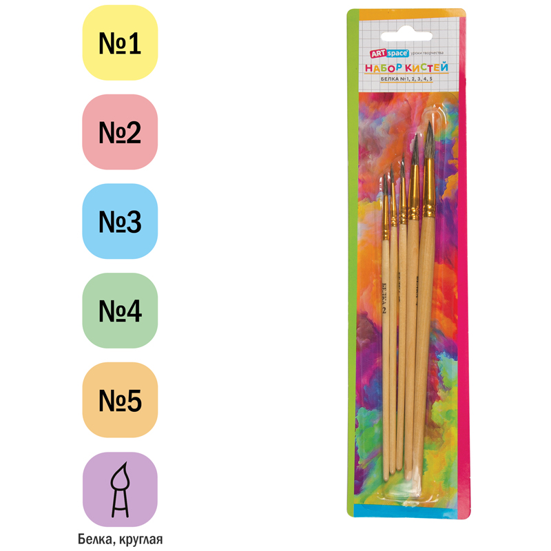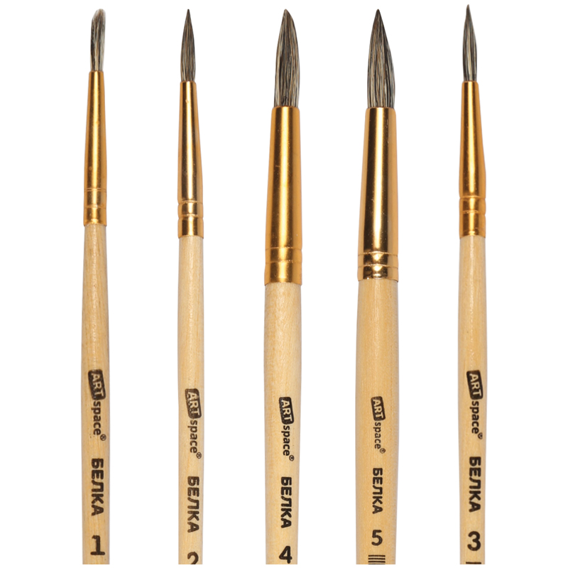 Художественные кисти ArtSpace изготовлены из волоса белка. Они хорошо впитывают, удерживают и отдают краску. Изделия подойдут для работы с акварелью, гуашью, темперой, водополимерными материалами. Кисти позволят протестировать вариативные мазки и расширят возможности в процессе создания картины.