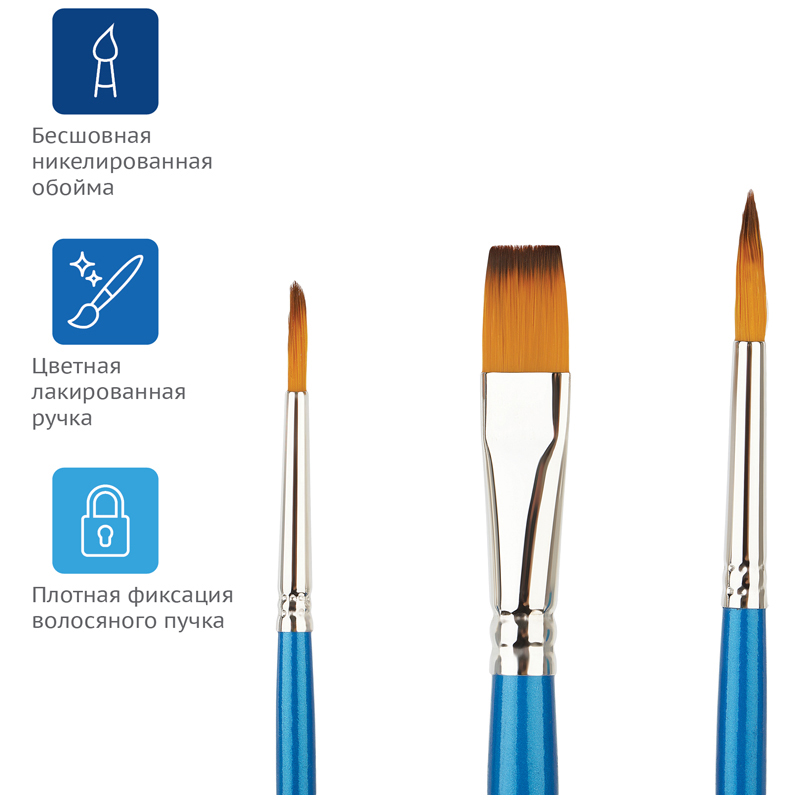 Набор кистей «ГАММА» серии «Классические» прекрасно подойдёт для различных видов красок. Кисти упакованы в красивый яркий блистер и станут незаменимыми помощниками для школьников и педагогов, а также хорошим подарком всем, кто увлекается живописью.
