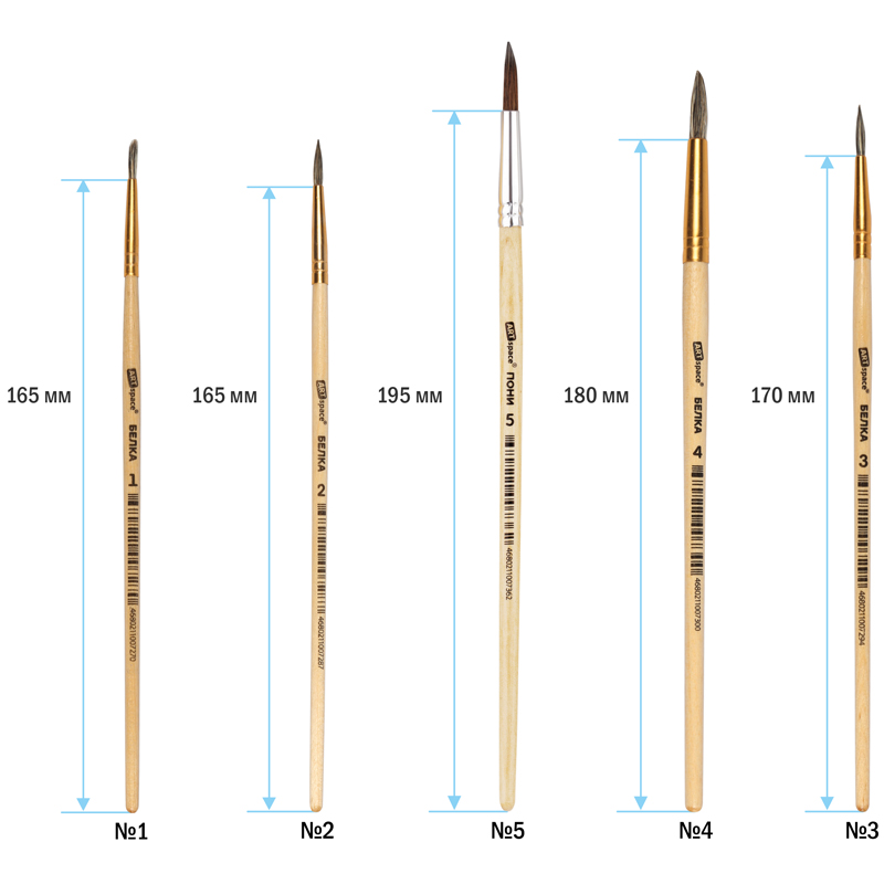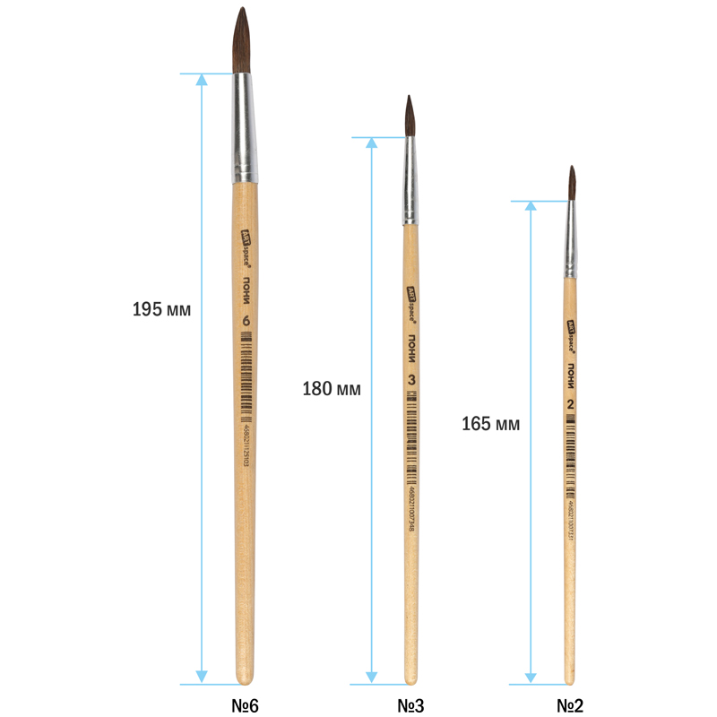 Художественные кисти ArtSpace изготовлены из волоса пони. Они хорошо впитывают, удерживают и отдают краску. Изделия подойдут для работы с акварелью, гуашью, темперой, водополимерными материалами. Кисти позволят протестировать вариативные мазки и расширят возможности в процессе создания картины.