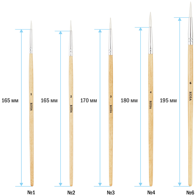 Художественные кисти ArtSpace изготовлены из волоса козы. Они хорошо впитывают, удерживают и отдают краску. Изделия подойдут для работы с акварелью, гуашью, темперой, водополимерными материалами. Кисти позволят протестировать вариативные мазки и расширят возможности в процессе создания картины.