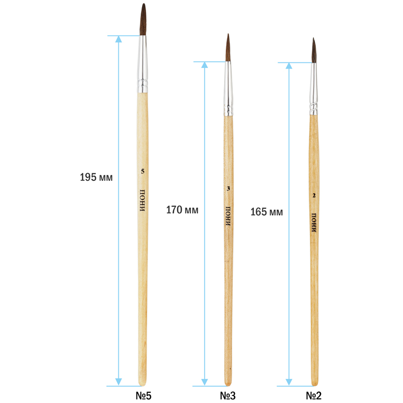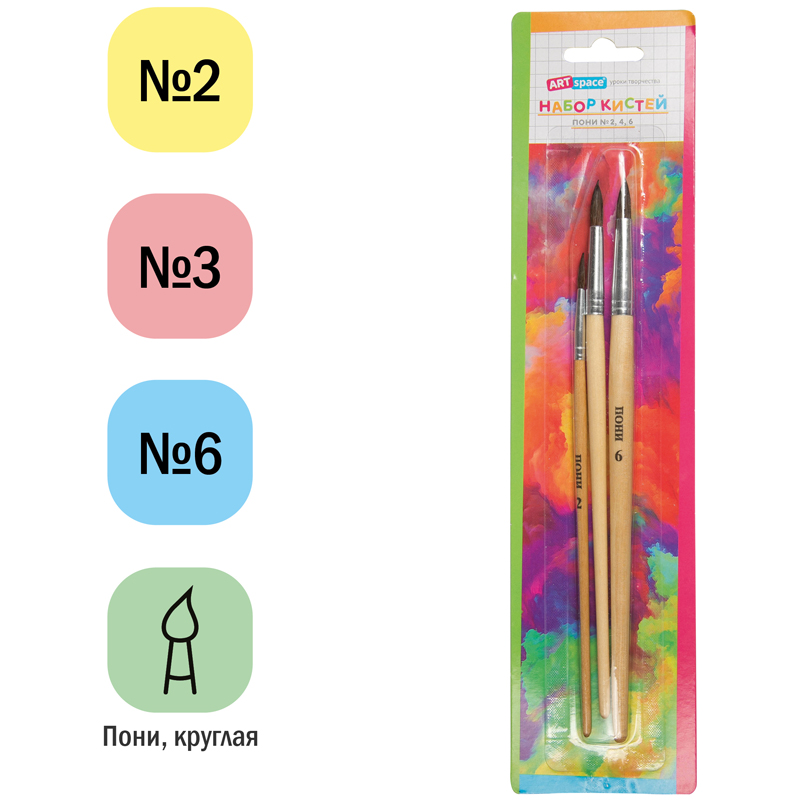 Набор кистей ArtSpace из волоса пони и козы. Подходит для начальных уроков рисования. В наборе 3 кисти разного размера. Они идеально подходят для создания ярких шедевров и тестирования новых художественных технинк.