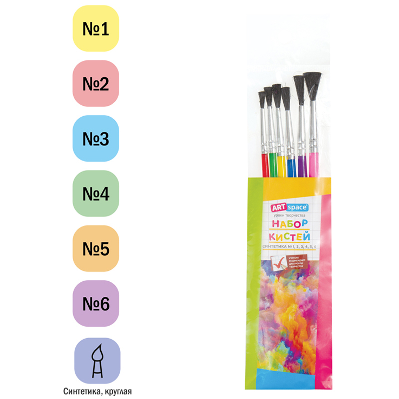 Художественные кисти ArtSpace изготовлены из синтетики. Они хорошо впитывают, удерживают и отдают краску. Изделия подойдут для работы с акварелью, гуашью, темперой, водополимерными материалами. Кисти позволят протестировать вариативные мазки и расширят возможности в процессе создания картины.