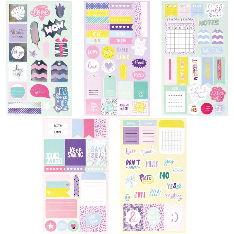 Бумажные наклейки для ежедневников MESHU Bright life – отличный помощник в креативном оформлении записей в блокнотах и дневниках. Наклейки выполнены в милом дизайне. Лист с наклейками представлен в размере 12*21 см. В упаковке 40-60 наклеек, изготовленных из самоклеящейся бумаги. Бумажные наклейки подойдут также для украшения канцтоваров, открыток, поделок, телефонов, ноутбуков, предметов интерьера. Яркие современные дизайны от MESHU сделают творческий процесс увлекательным и подарят отличное настроение. Наклейки представлены с европодвесом. • Размер листа: 120*210 мм; • Количество наклеек: 40-60