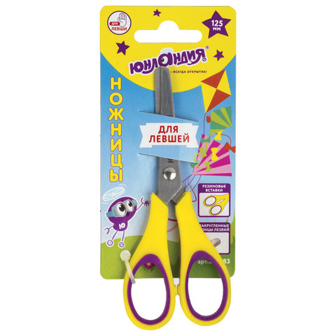 Ножницы ЮНЛАНДИЯ с "перевернутыми" лезвиями разработаны специально для левшей. Они не сгибают и не мнут бумагу, позволяют всегда контролировать линию среза.