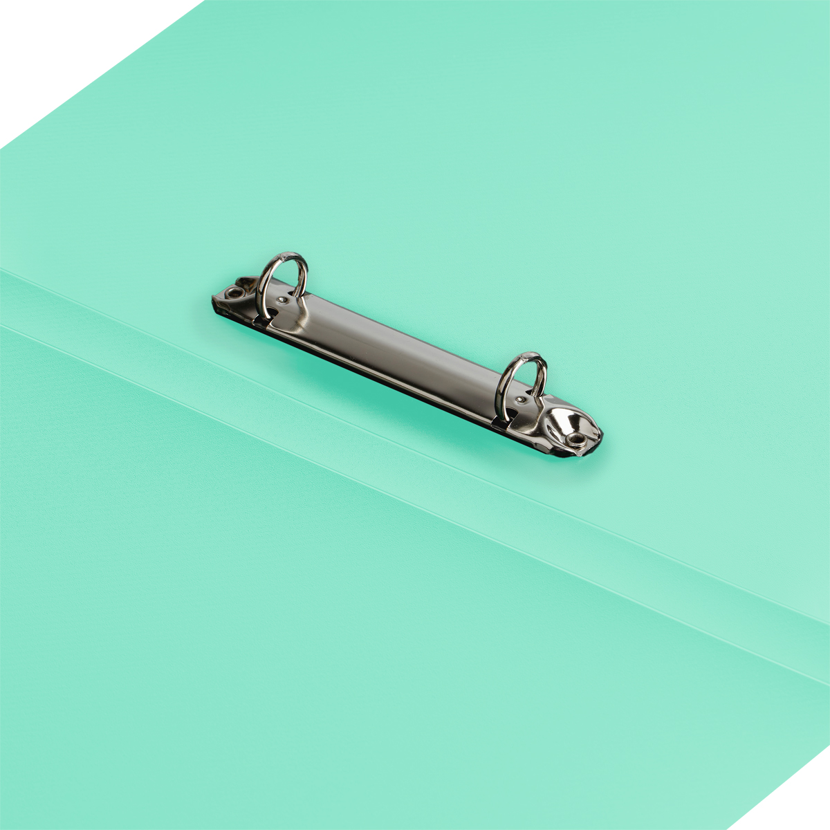 Папка на 2 кольцах «СТАММ» предназначена для хранения перфорированных документов формата А4. Цвет папки – мятный. Изготовлена из качественного полипропилена плотностью 500 мкм с текстурой «песок». Размер изделия составляет 310*250 мм. Ширина корешка 25 мм позволяет вмещать в папку до 120 листов. Кольцевой механизм, состоящий из 2 колец диаметром 16 мм, надежно держит документы. Папка упакована в индивидуальный пакет. • Размер: 310*250 мм; • Толщина материала: 500 мкм; • Формат: А4; • Цвет: мятный; • Вместимость в листах: до 120 листов; • Ширина корешка: 25 мм.