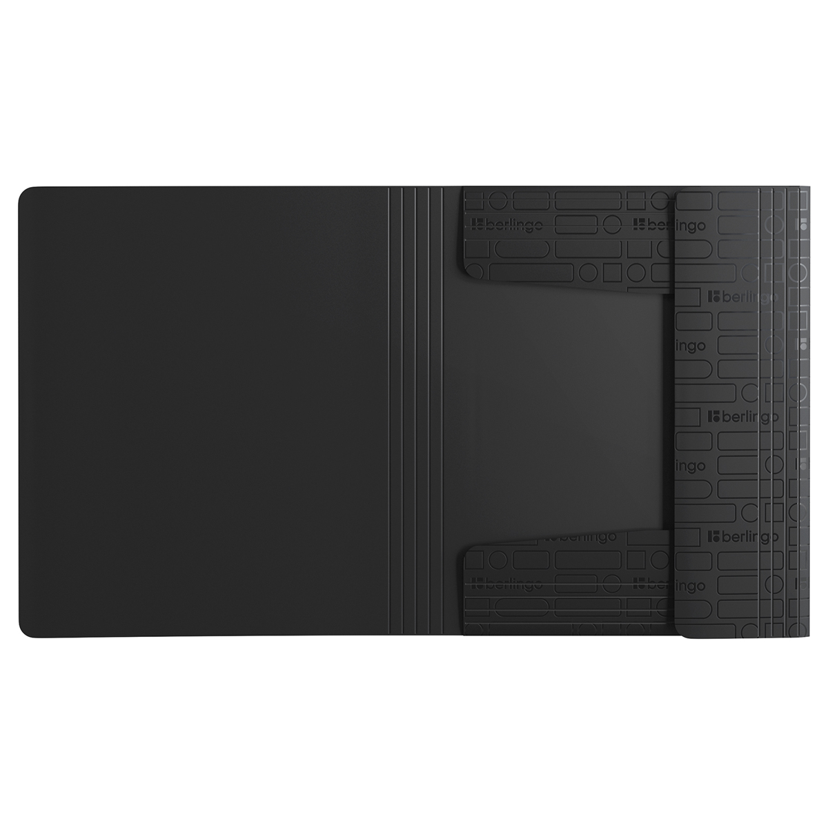 Папка для тетрадей на резинках Berlingo DoubleBlack формата А5+ чёрного цвета с рельефным рисунком UV-лаком идеально подойдёт для хранения тетрадей и документов. Товар изготовлен из высококачественного полипропилена с матовой текстурой поверхности «песок», на которой не видно отпечатков пальцев и мелких царапин. Застёжки-резинки чёрного цвета обеспечивают надёжную сохранность документов. Быстрый доступ к содержимому. Размер папки: 197*220*5 мм, ширина корешка: 5 мм, толщина обложки: 600 мкм, вместимость 300 листов. • Формат: А5+; • Материал: пластик; • Ширина корешка: 5 мм; • Способ фиксации: резинка; • Размер: 197*220*5 мм; • Цвет: чёрный.