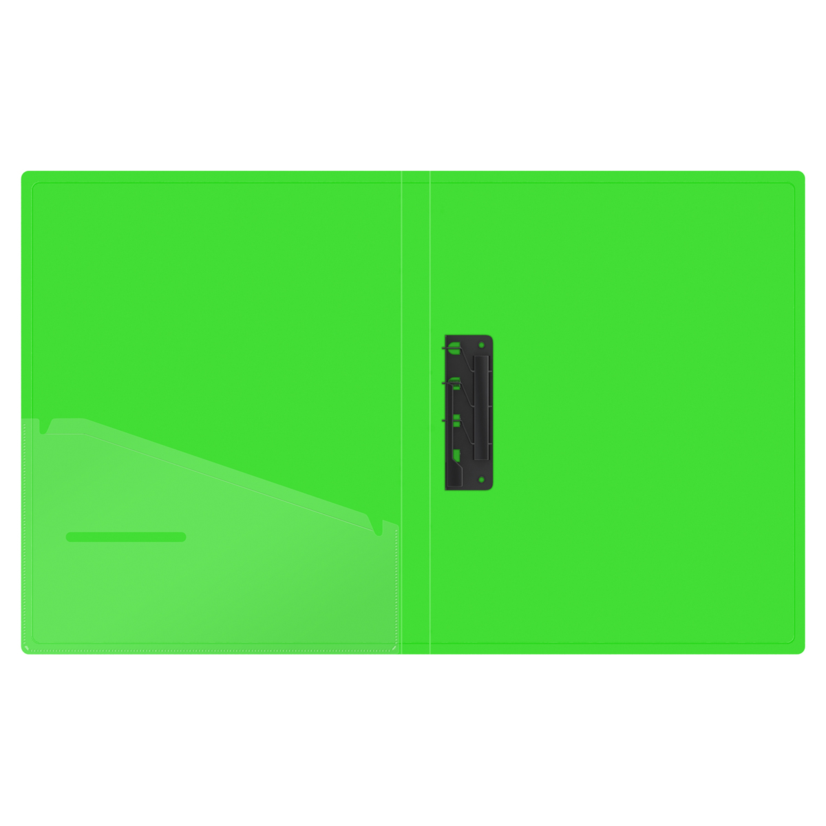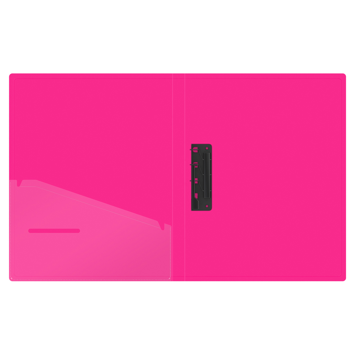 Папка с металлическим прижимным механизмом для бережного хранения документов без перфорации. Изготовлена из плотного фактурного пластика толщиной 1 мм. Яркие насыщенные цвета. Черный цвет внутренней поверхности. Черный цвет зажима. Дополнительный внутренний карман для удобного хранения мелочей. Индивидуальная упаковка в пакет.