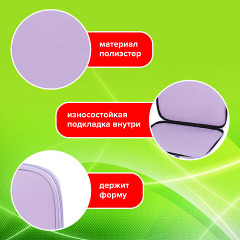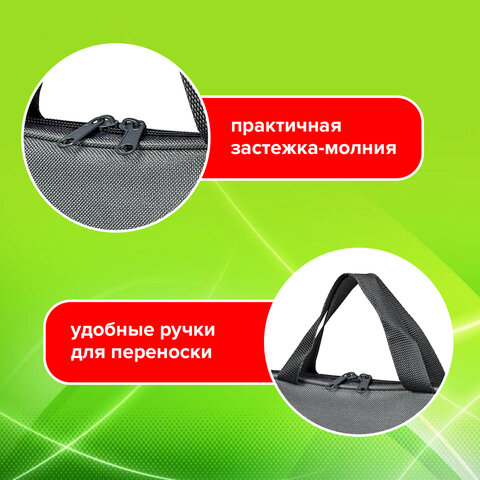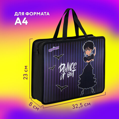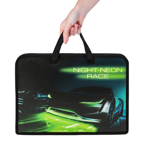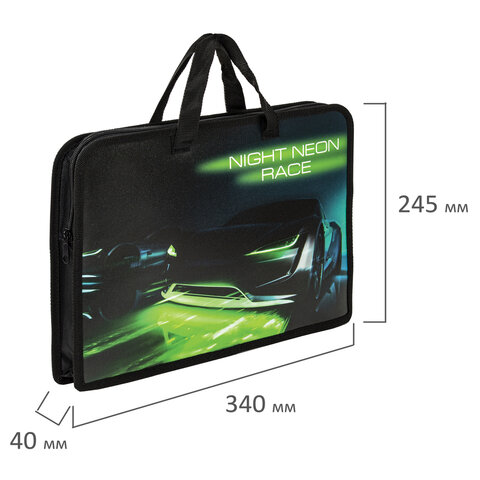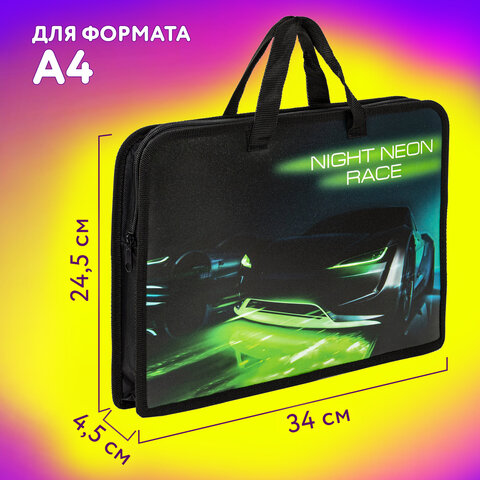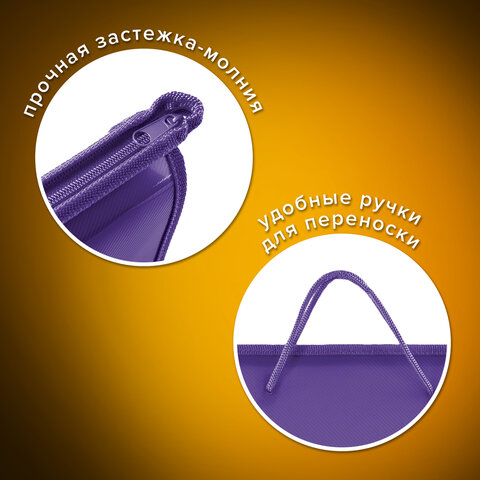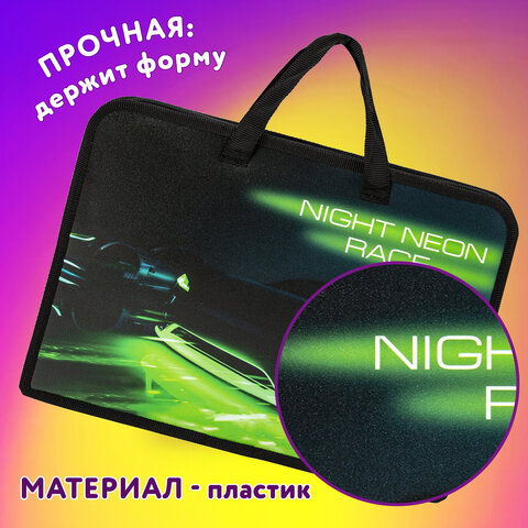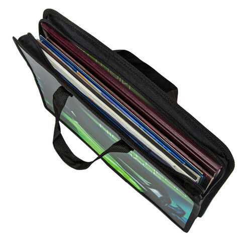 Папка для тетрадей BRAUBERG формата А4 с ручками для переноски. Изготовлена из плотного полиэстера с подкладкой внутри. Одно отделение. Застегивается на молнию. Папка держит форму за счет прорезиненного канта по краям. Яркая цветная печать.