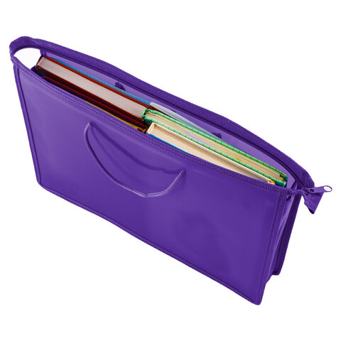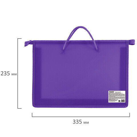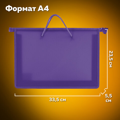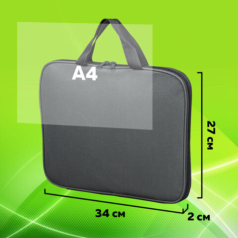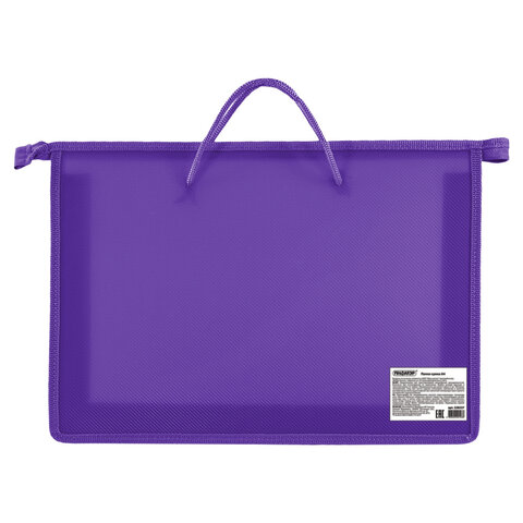 Папка на молнии с ручками формата А4 выполнена из пластика, по краям имеет тканевую окантовку. Предназначена для транспортировки и хранения документов, учебных пособий и канцелярских и художественных принадлежностей формата А4.