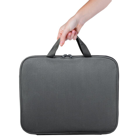 Папка-сумка для бумаг STAFF EVERYDAY формата А4 с ручками. Одно отделение. Папка держит форму за счет прорезиненного канта по краям. Застегивается на молнию, два бегунка позволяют открывать и закрывать папку с любой стороны.