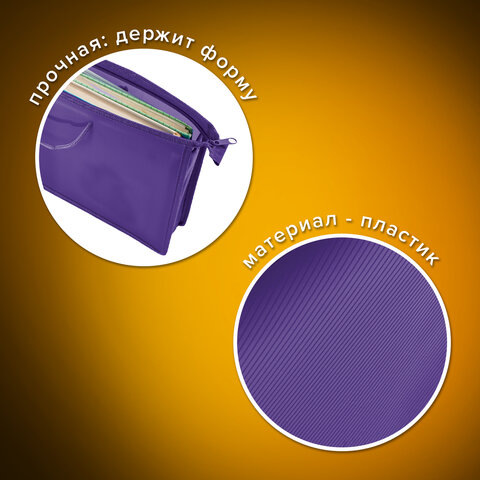 Папка на молнии с ручками ПИФАГОР формата А4 выполнена из однотонного пластика, по краям имеет тканевую окантовку. Одно отделение. Застежка-молния расположена по верхнему краю папки.
