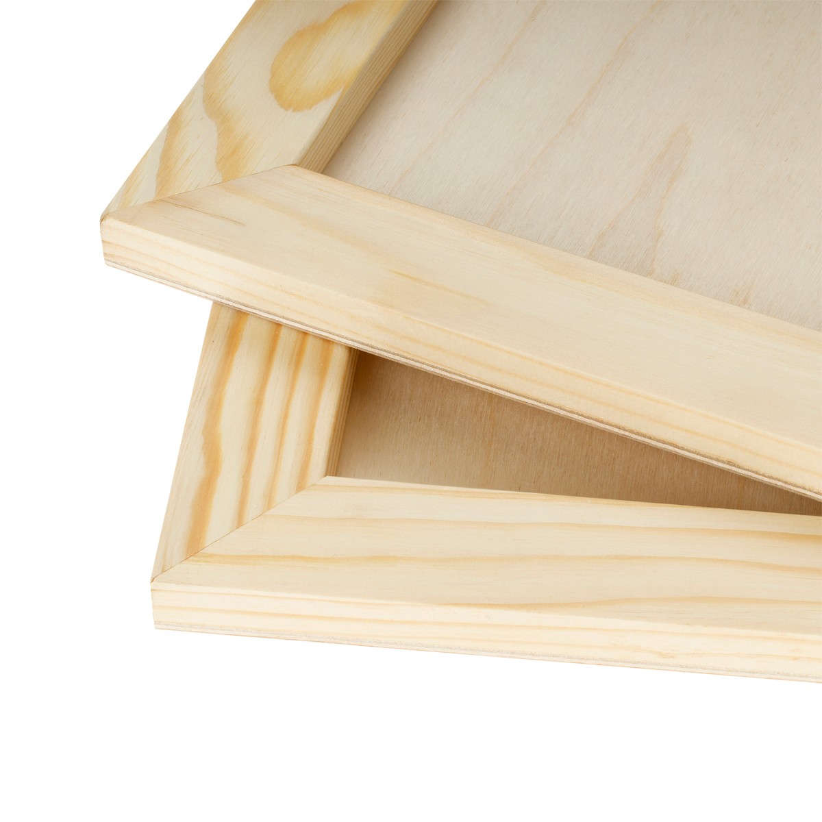 Планшеты из фанеры представляют собой жесткую основу для закрепления бумаги для чертежных и графических работ, выездов на пленэры. Планшет может быть закреплен на мольберте или этюднике. Планшет представляет собой лист клееной березовой фанеры первого сорта, закрепленный на жестком сосновом подрамнике. Фанера хорошо отшлифована, подходит даже для тонкой бумаги. Для закрепления бумаги можно использовать кнопки, поверхность планшета достатчоно мягкая для надежной фиксации, практически не повреждается и подходит для длительной эксплуатации. Планки подрамника надежно соединены металлическими скобами, фанера крепится к подрамнику под давлением, чтобы обеспечить мгновенную и прочную склейку.