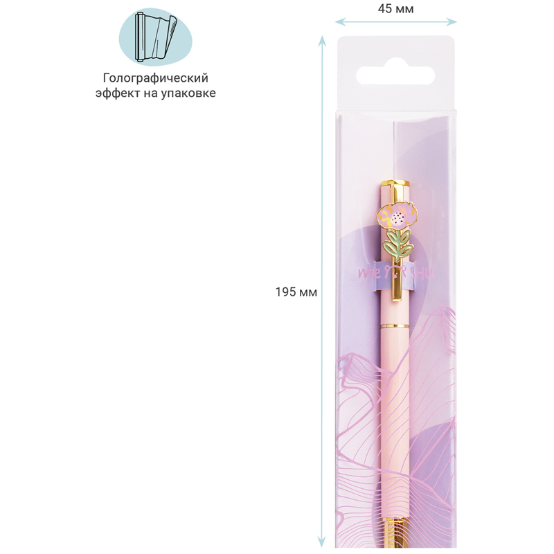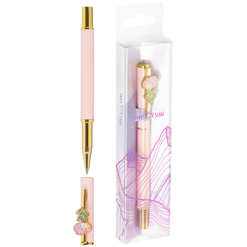 Шариковая ручка MESHU – это привлекательный аксессуар для ярких, смелых и успешных. Пастельно-розовый корпус ручки из металла с матовым эффектом украшен нежным цветком на клипе, с помощью которого ручку можно закрепить на одежде или ежедневнике. Ручка Flower обязательно принесет удачу в заключении важных контрактов и торжественных соглашений. Изящные и плавные линии, декоративные детали станут неотъемлемой частью праздничной и радостной атмосферы. Благодаря упаковке с голографическими элементами ручка может стать приятным подарком. Диаметр пишущего узла составляет 1 мм, а значит ручка подойдёт для мягкого и быстрого письма. Толщина линии составляет 0,8 мм. Длина сменного стержня 97 мм. Благодаря чернилам синего цвета ручку можно использовать в работе или учёбе на постоянной основе.