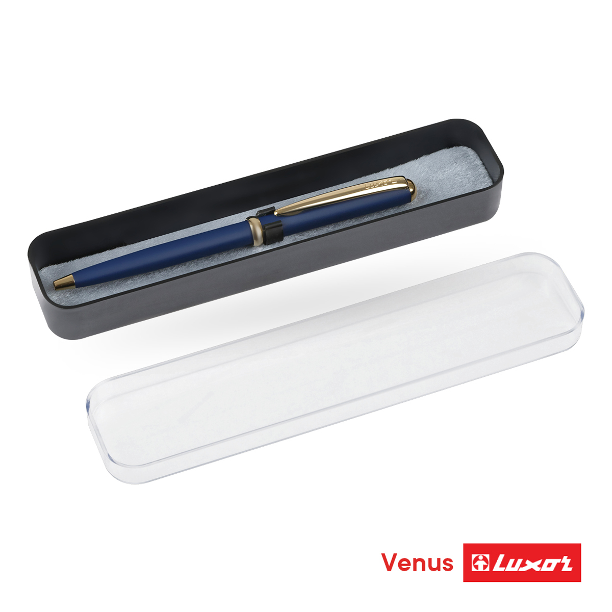 Шариковая ручка Luxor Venus стильный инструмент для письма и отличный подарок. Матовое покрытие корпуса насыщенного синего цвета в сочетании с золотыми деталями выгодно подчёркивают статус ручки. Металлический клип позволяет закрепить ручку на блокнотах, ежедневниках или карманах одежды. Пишущий узел оставляет линию толщиной 0,5 мм и подходит для любого стиля письма. Чернила ультрапониженной вязкости обеспечивают комфортное, плавное письмо и устойчивость к выцветанию на солнце. Изделие поставляется в пластиковом футляре. Подарочная ручка и футляр подходят для персонализации. Шариковая ручка Luxor Venus - стильный пишущий инструмент на каждый день и отличный подарок на любой праздник! ∙ Цвет чернил: синий; ∙ Толщина линии письма: 0,5 мм; ∙ Цвет корпуса: синий; ∙ Тип упаковки: пластиковый футляр с европодвесом.