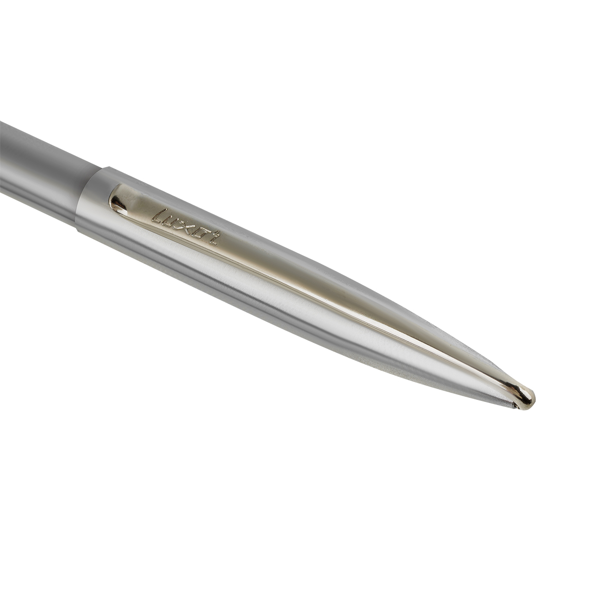 Изящная перьевая ручка Luxor "Sleek" в металлическом серебряном корпусе с хромированными элементами.