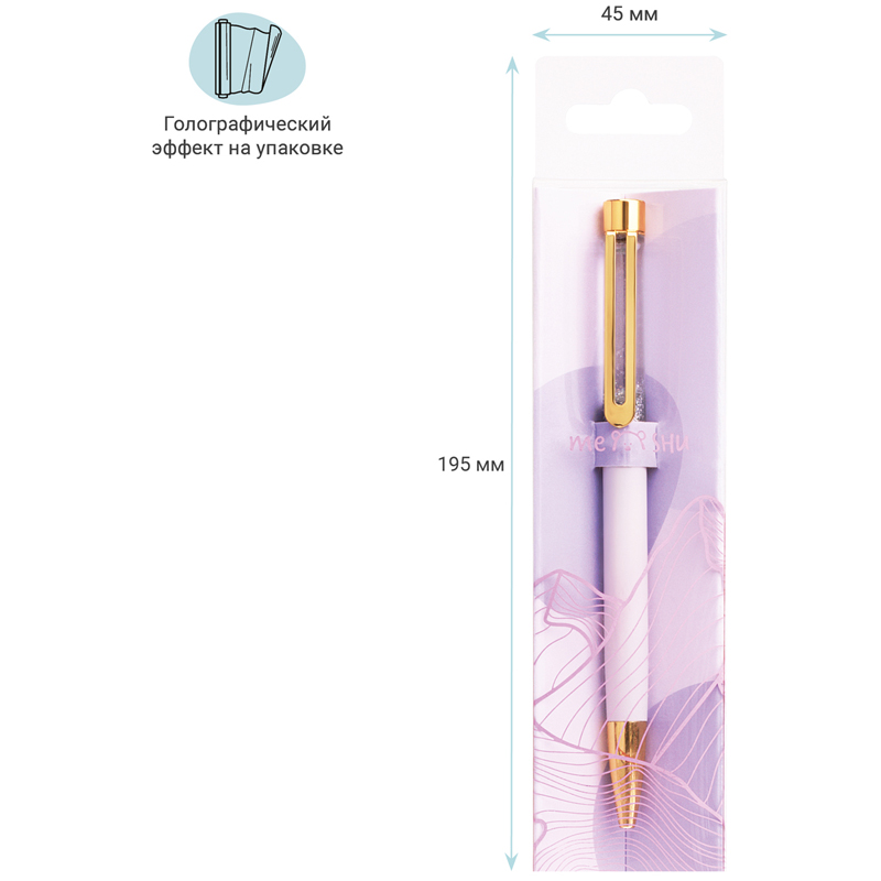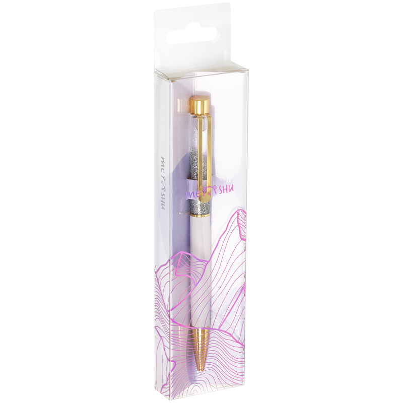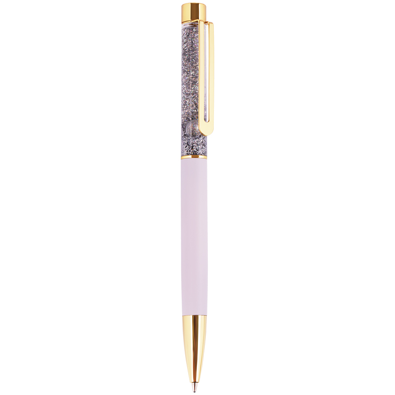 Шариковая ручка MESHU – это привлекательный аксессуар для ярких, смелых и успешных. Золотой корпус ручки из металла с лиловым матовым эффектом украшен вставкой с серебристым глиттером и дополнен металлическим клипом, с помощью которого ручку можно закрепить на одежде или ежедневнике. Ручка Lilac sand обязательно принесет удачу в заключении важных контрактов и торжественных соглашений. Изящные и плавные линии, декоративные детали станут неотъемлемой частью праздничной и радостной атмосферы. Благодаря упаковке с голографическими элементами ручка может стать приятным подарком. Диаметр пишущего узла составляет 1 мм, а значит ручка подойдёт для мягкого и быстрого письма. Толщина линии составляет 0,8 мм. Длина сменного стержня 142 мм. Ручка оснащена поворотным механизмом, что говорит о надёжности и безопасности изделия – стержень не повредится в сумке и не оставит следов на посторонних предметах. Благодаря чернилам синего цвета ручку можно использовать в работе или учёбе на постоянной основе.