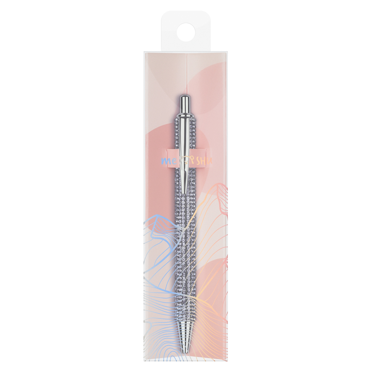 Шариковая ручка MESHU – это привлекательный аксессуар для ярких, смелых и успешных. Корпус ручки из металла под серебро украшен вставкой со стразами и дополнен металлическим клипом, с помощью которого ручку можно закрепить на одежде или ежедневнике. Ручка "Lilac diamond" обязательно принесет удачу в заключении важных контрактов и торжественных соглашений. Изящные и плавные линии, декоративные детали станут неотъемлемой частью праздничной и радостной атмосферы. Благодаря упаковке с голографическими элементами ручка может стать приятным подарком. Диаметр пишущего узла составляет 1 мм, а значит ручка подойдёт для мягкого и быстрого письма. Толщина линии составляет 0,8 мм. Длина сменного стержня 142 мм. Ручка оснащена кнопочным механизмом, что говорит о надёжности и безопасности изделия – стержень не повредится в сумке и не оставит следов на посторонних предметах. Благодаря чернилам синего цвета ручку можно использовать в работе или учёбе на постоянной основе.