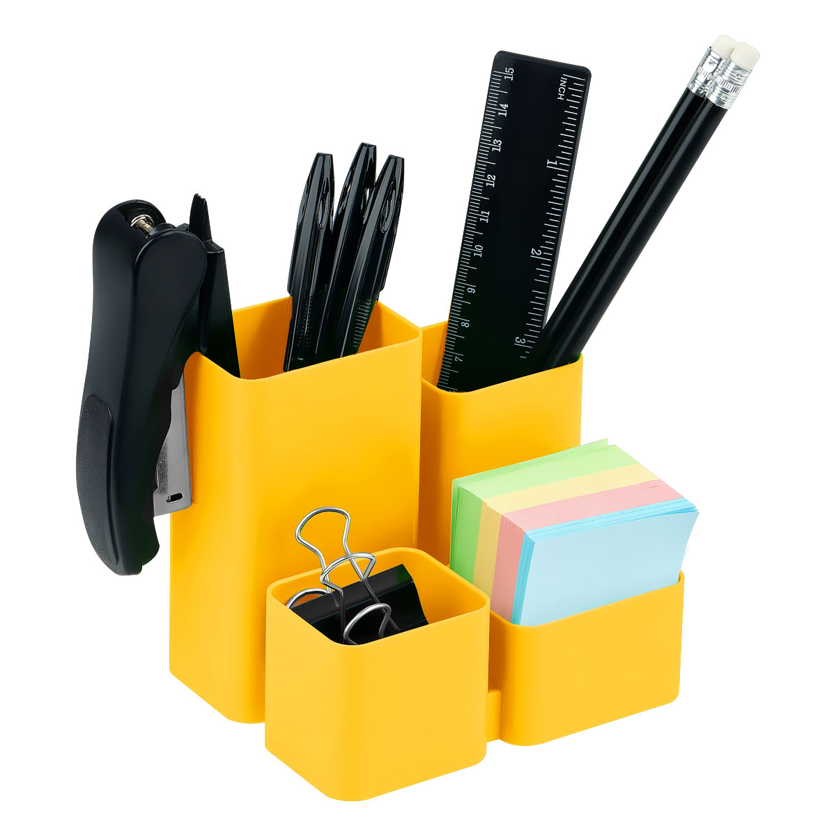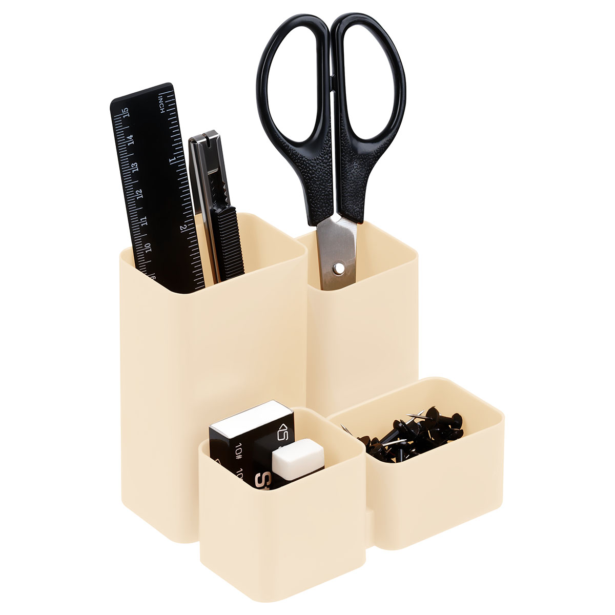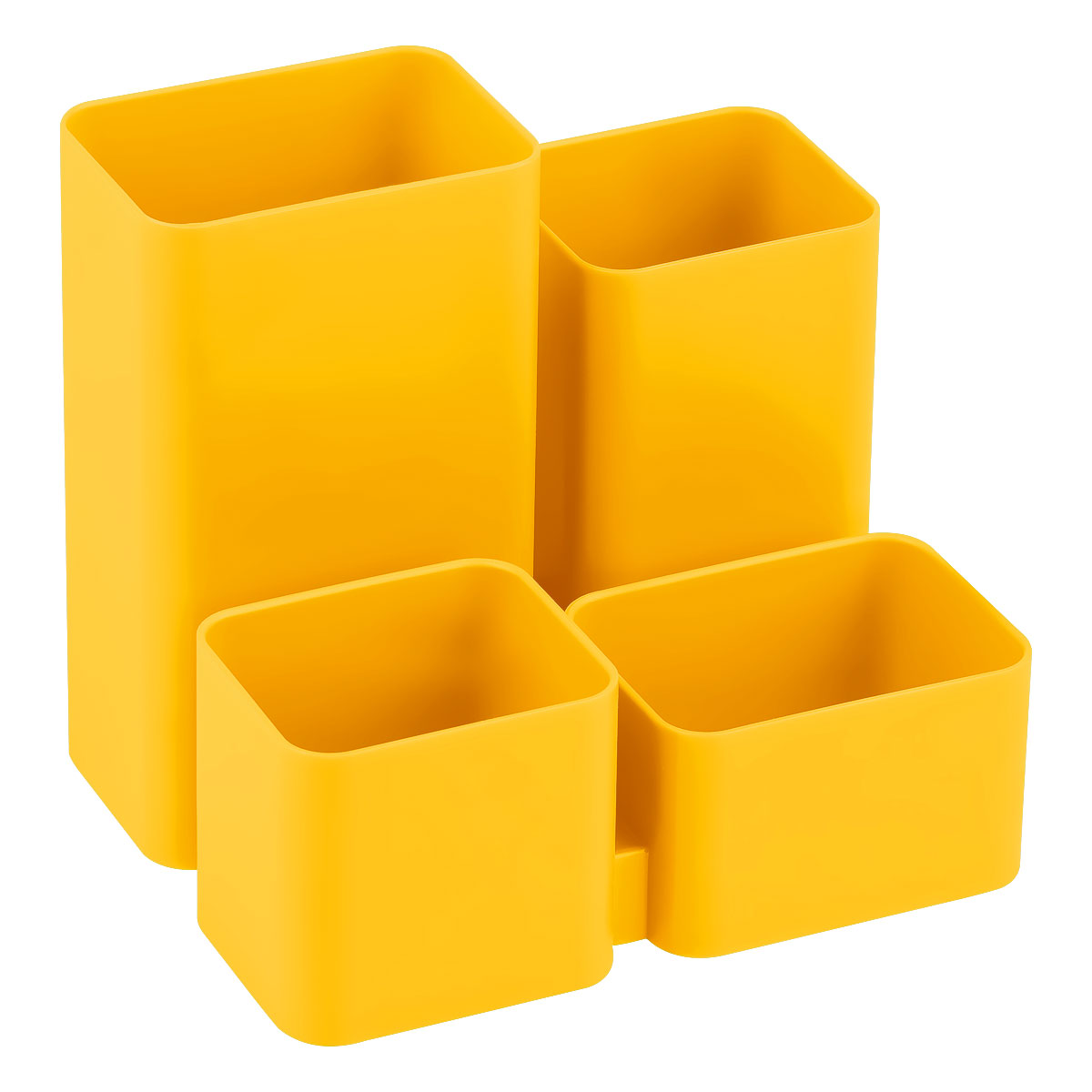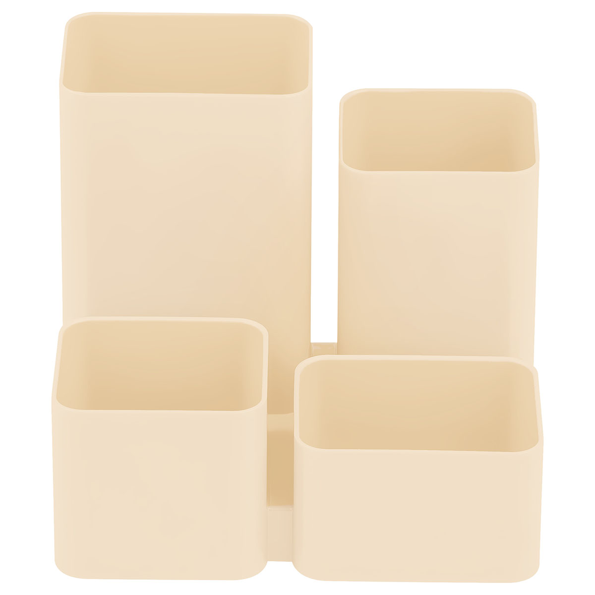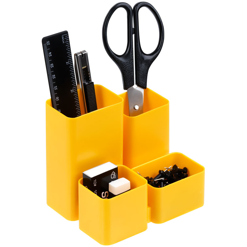 Компактный органайзер для офиса. Надежный корпус, гладкая глянцевая поверхность. 4 отделения позволяют хранить необходимые канцелярские принадлежности. Высота подставки - 102 мм. Прочный корпус изделия изготовлен из полистирола.