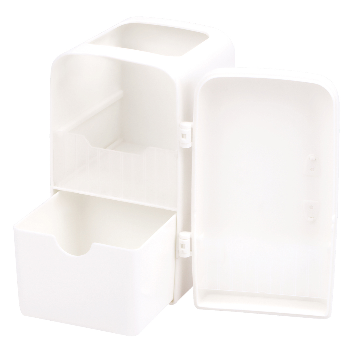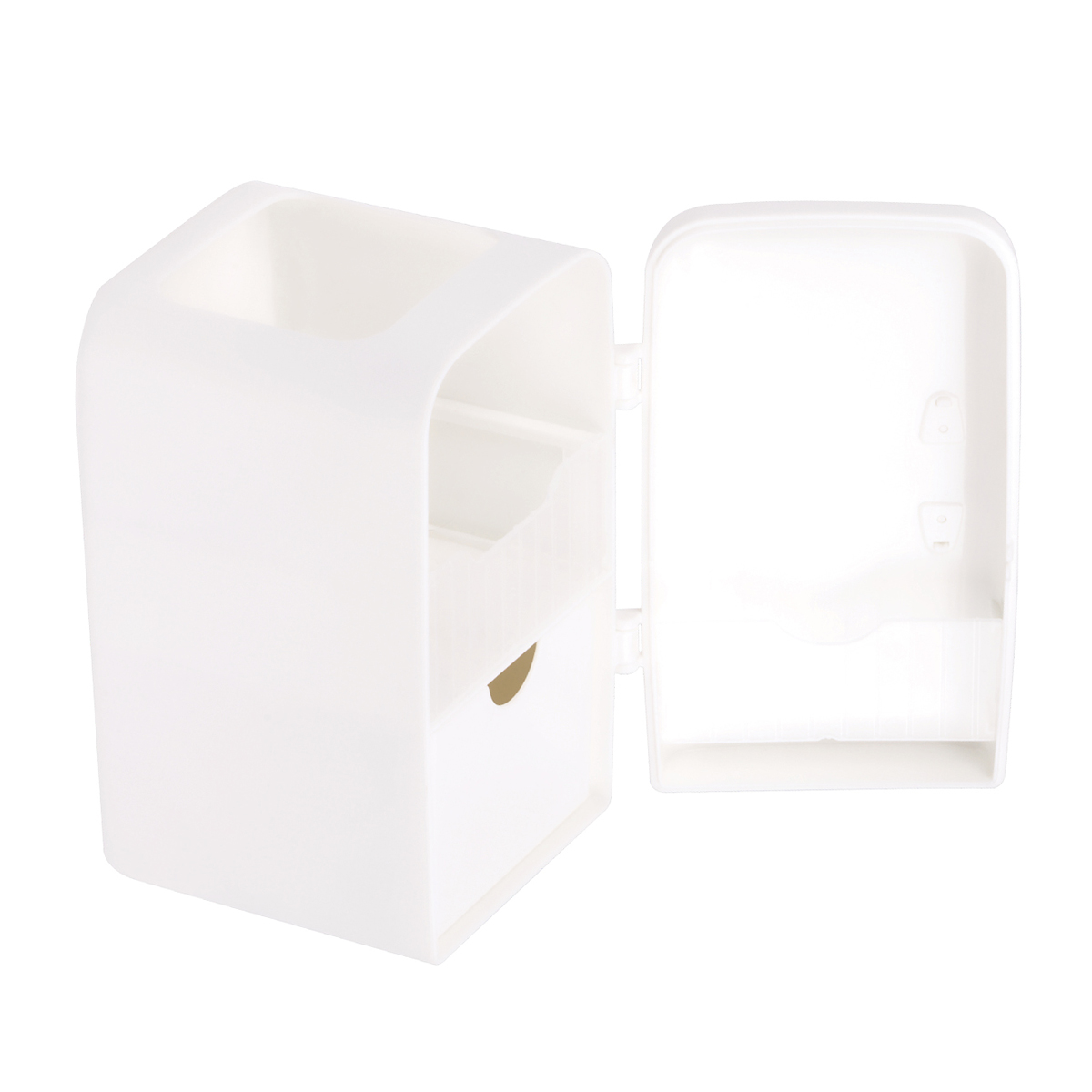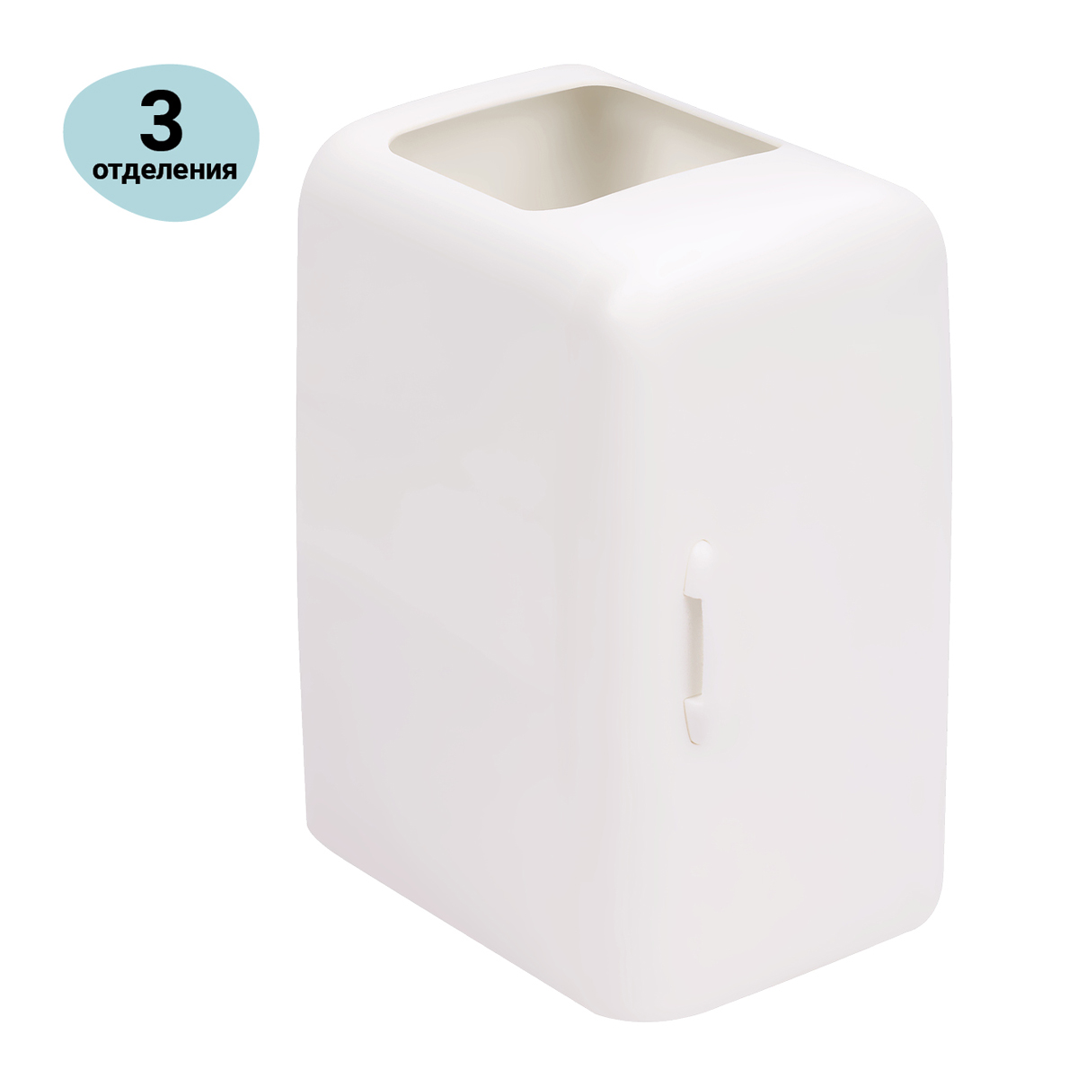 Настольная подставка MESHU в молочном цвете предназначена для хранения пишущих принадлежностей и канцелярских мелочей. Подставка имеет 3 отделения. Упакована в термоусадочную пленку. • Материал: пластик; • Цвет: молочный; • Количество секций: 3; • Размер: 8*10,5*14 см.