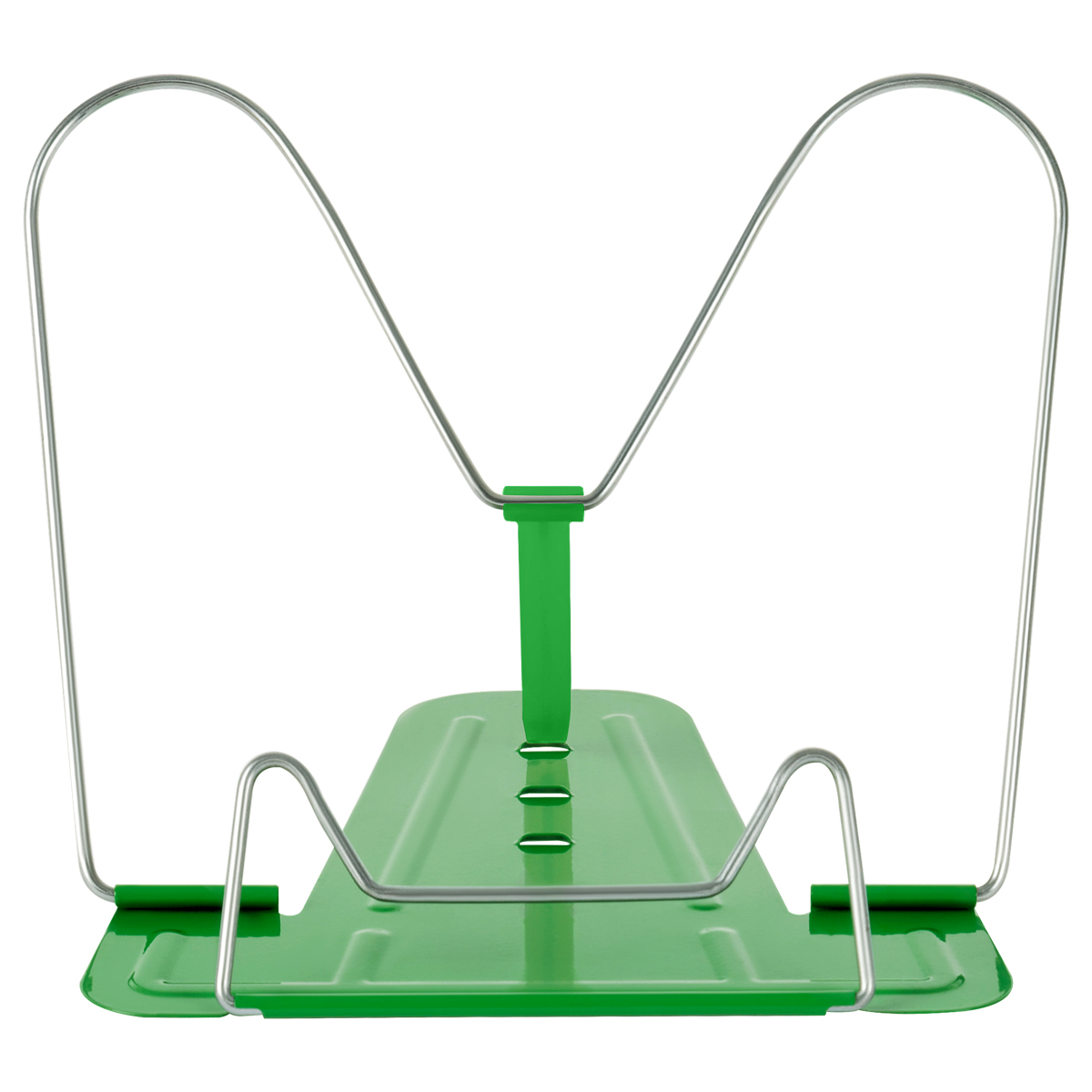 Подставка для книг металлическая СТАММ позволяет расположить книгу под удобным для чтения углом наклона. Подходит для больших и малых форматов книг. Имеет регулируемый угол наклона: от 110 до 130 градусов. Благодаря наличию фиксатора подставка не складывается под тяжестью книги. Размер изделия: 210*285 мм. Использование подставки поможет сформировать правильную осанку. Складная конструкция изделия удобна при транспортировке и хранении. Поставляется в пакете с европодвесом. Материал подставки: металл/пластик. Цвет изделия: зелёный. • Вид: подставка для книг; • Материал: металл/пластик; • Угол наклона: от 110 до 130 градусов; • Размер: 210*285 мм; • Цвет: зелёный.