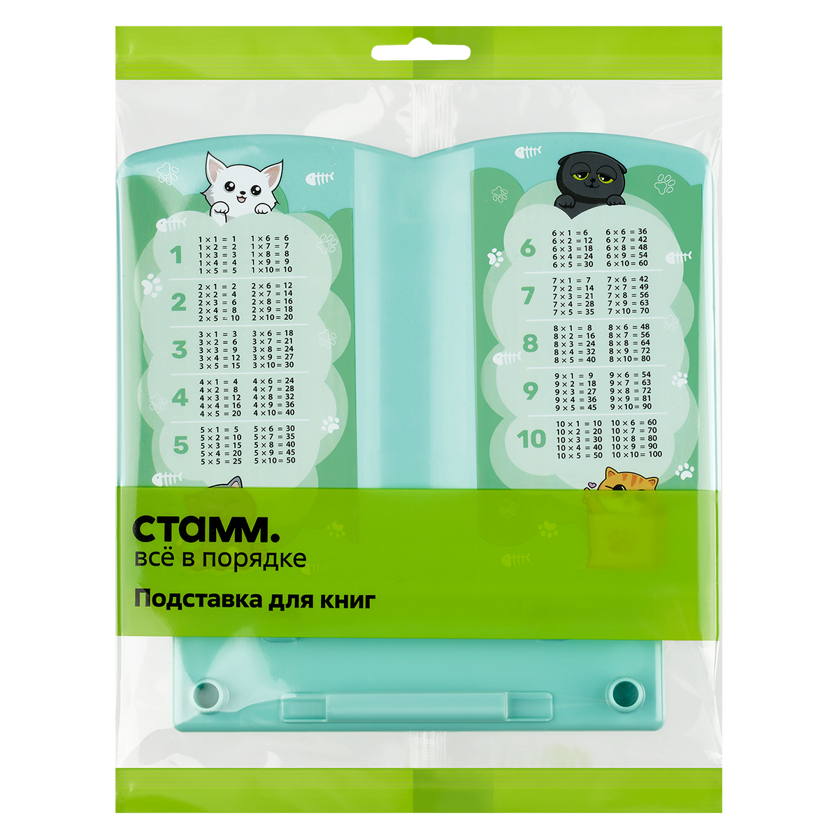 Подставка для книг «СТАММ» серии «Коты» – школьный аксессуар, повышающий комфорт при чтении. Изделие размером 200*200*25 мм подходит для больших и малых форматов книг. Подставка изготовлена из качественного пластика. Благодаря наличию фиксатора подставка не складывается под тяжестью книги. Изделие имеет регулируемый угол наклона: от 110 до 135 градусов. Складная конструкция удобна при транспортировке и хранении. Использование подставки поможет сформировать правильную осанку. Цвет изделия – мятный/жёлтый. Индивидуальная упаковка – флоупак. • Материал: пластик; • Угол наклона: от 110 до 135 градусов; • Размер: 200*200*25 мм; • Цвет: бирюзовый.