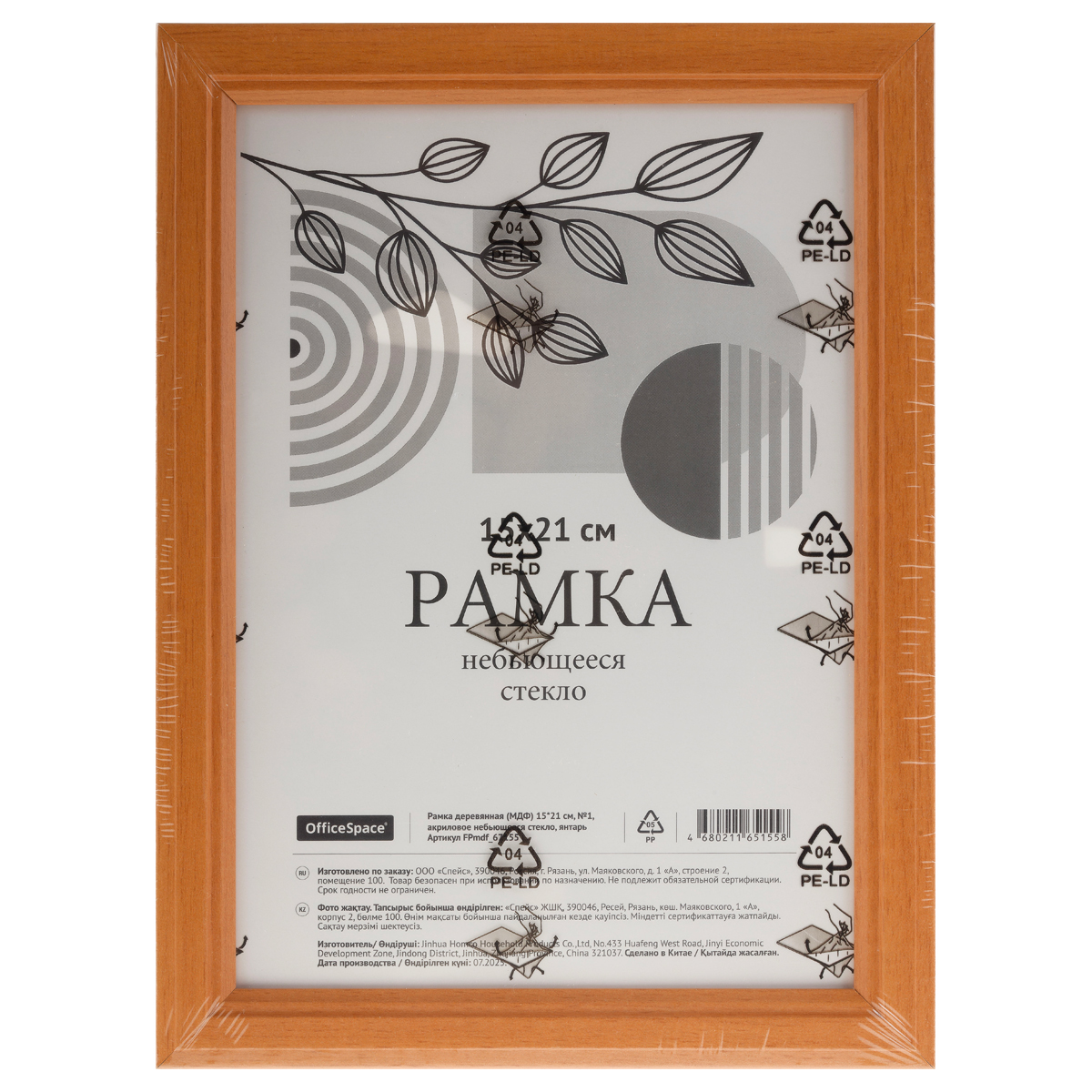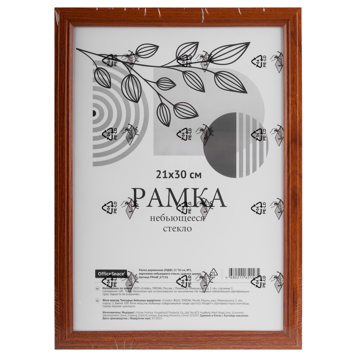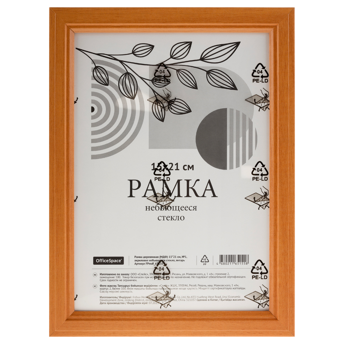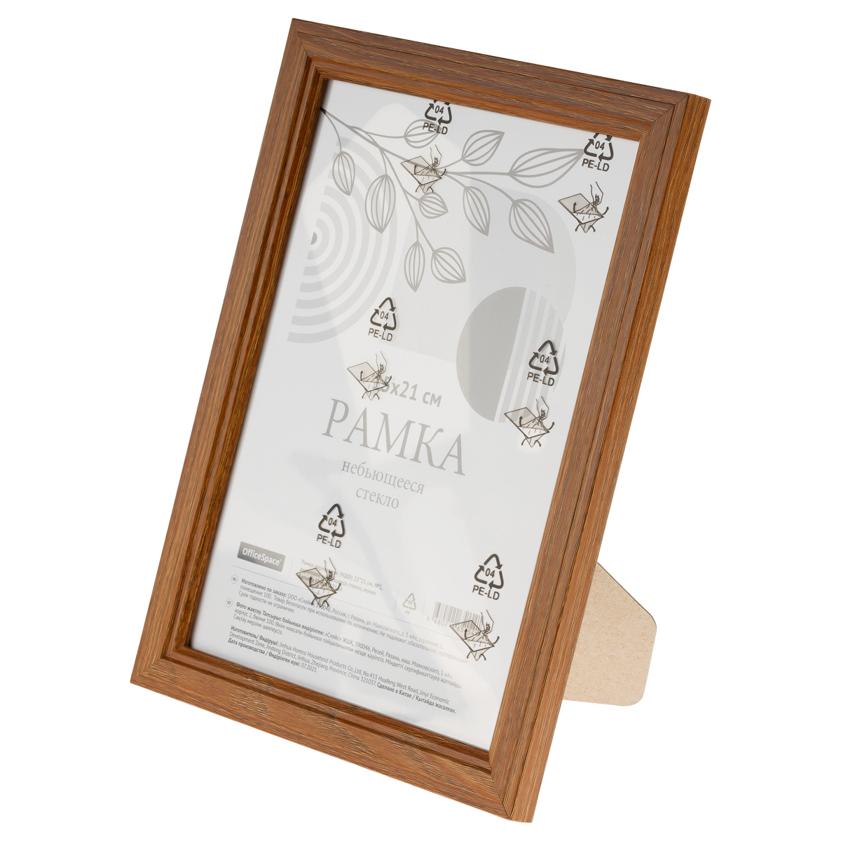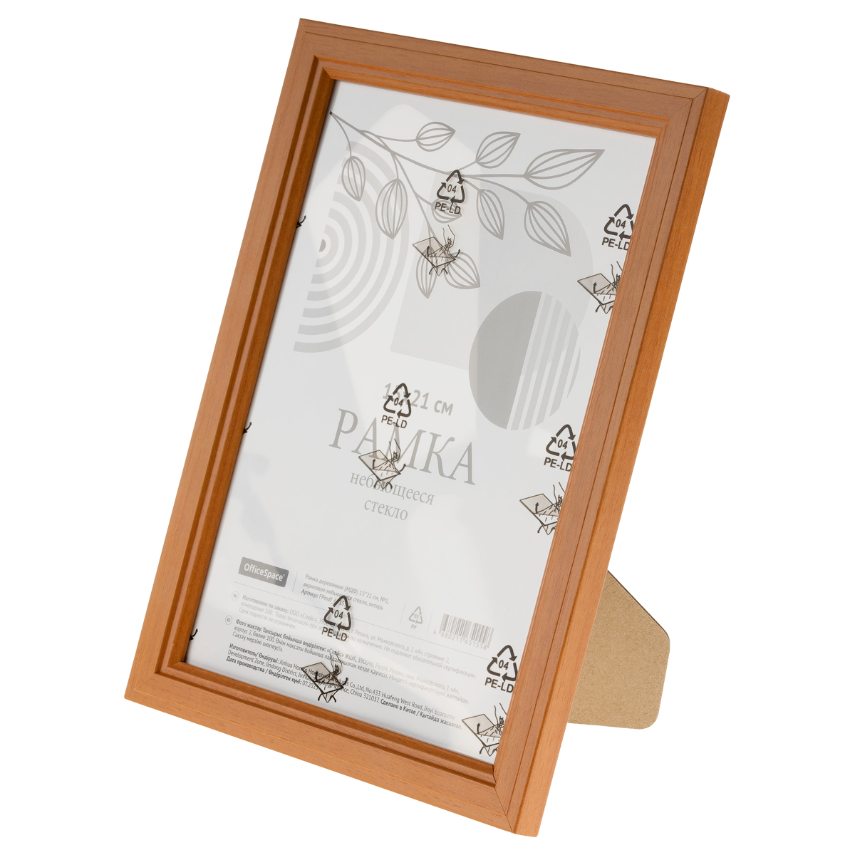 Рамка OfficeSpace из дерева (МДФ) используется для оформления фотографий, дипломов, сертификатов, постеров, картин и любых других изображений. Подходит как для вертикального, так и для горизонтального размещения. Имеется опорная ножка для установки рамки на столе. Защитная вставка из пластика. Задняя панель из переплетного картона. Рамка упакована в термоусадочную пленку.