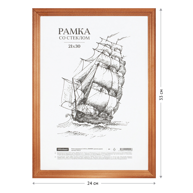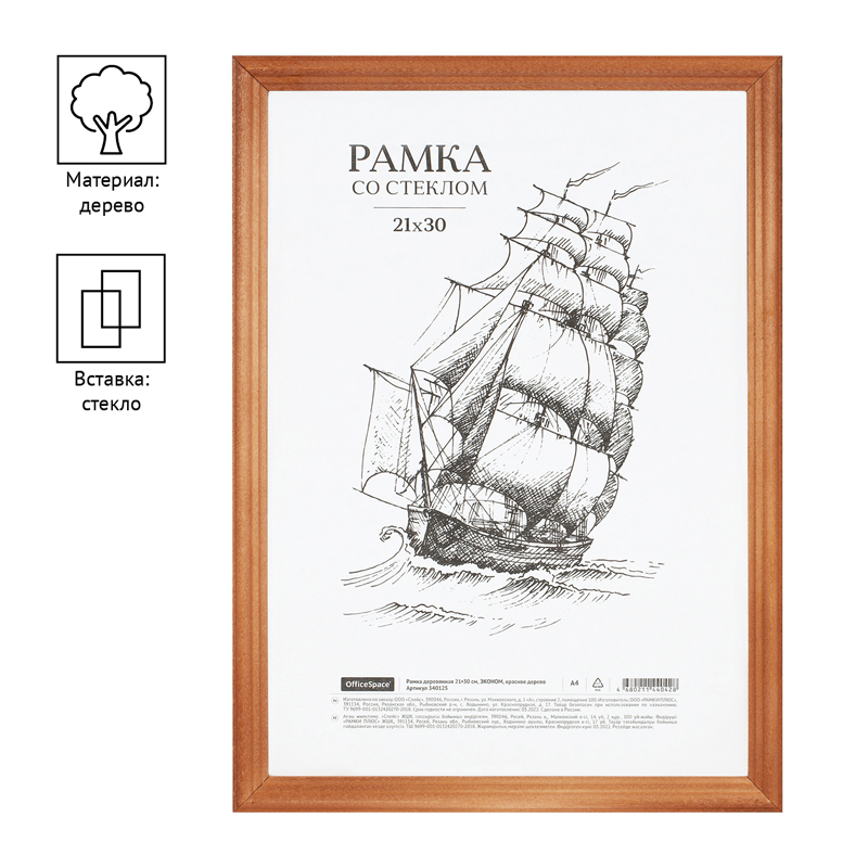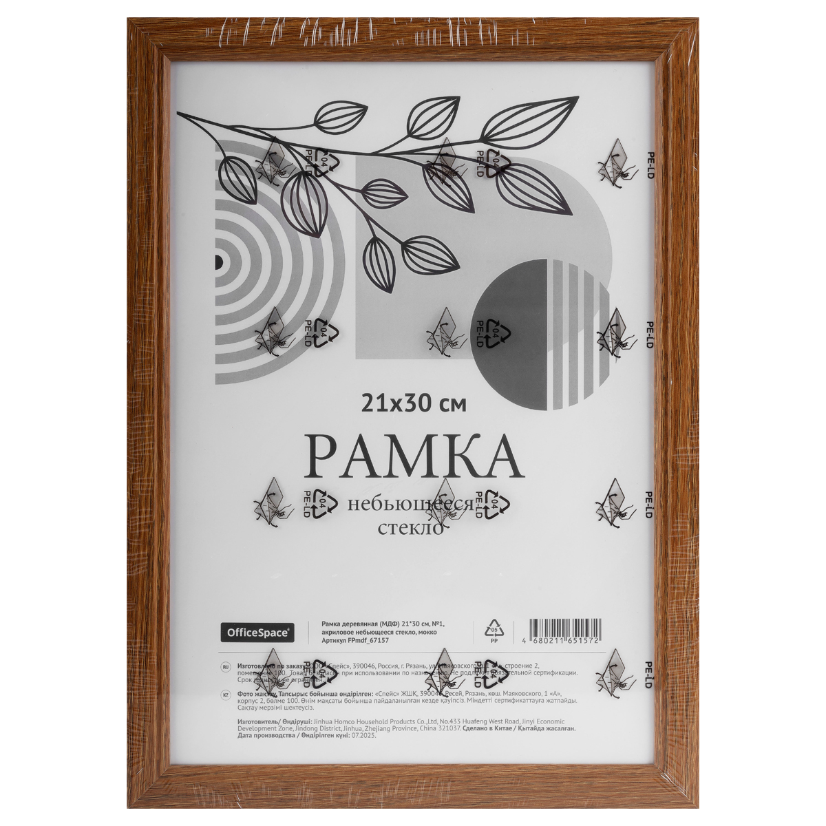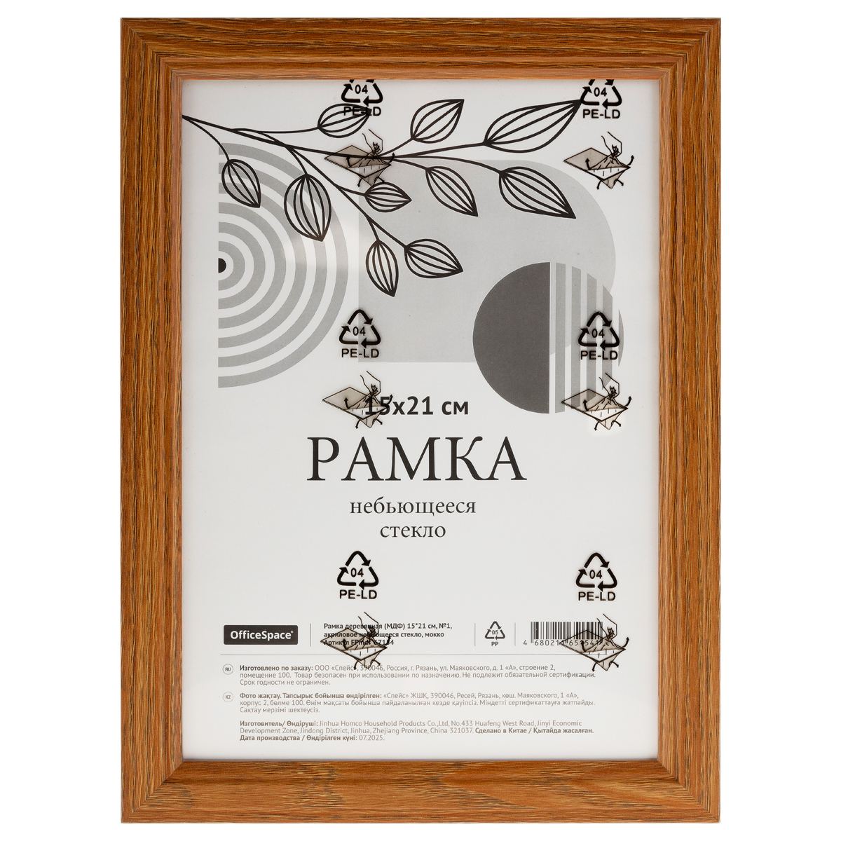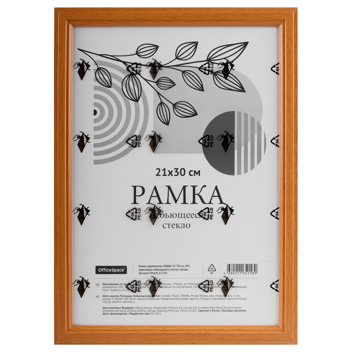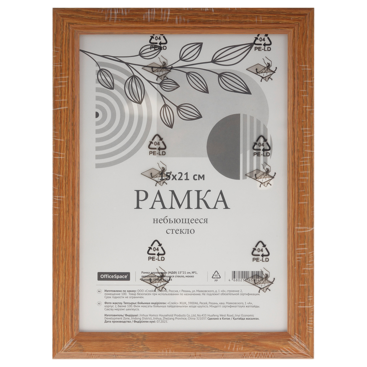 Рамка OfficeSpace из дерева (МДФ) используется для оформления фотографий, дипломов, сертификатов, постеров, картин и любых других изображений. Подходит как для вертикального, так и для горизонтального размещения. Имеется опорная ножка для установки рамки на столе. Защитная вставка из пластика. Задняя панель из переплетного картона. Рамка упакована в термоусадочную пленку.