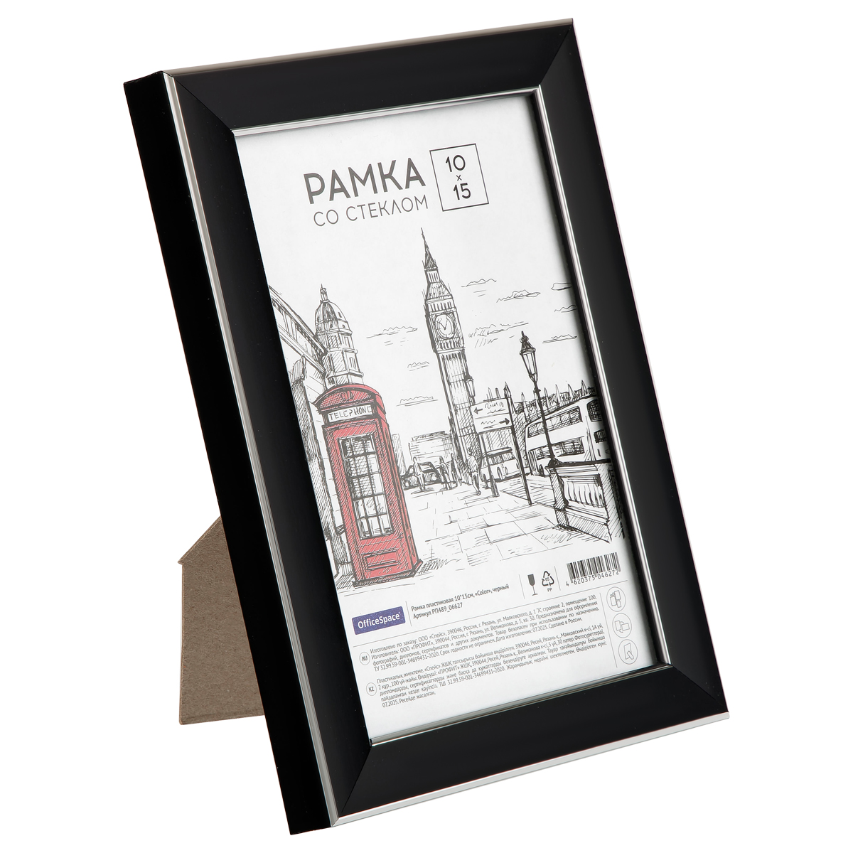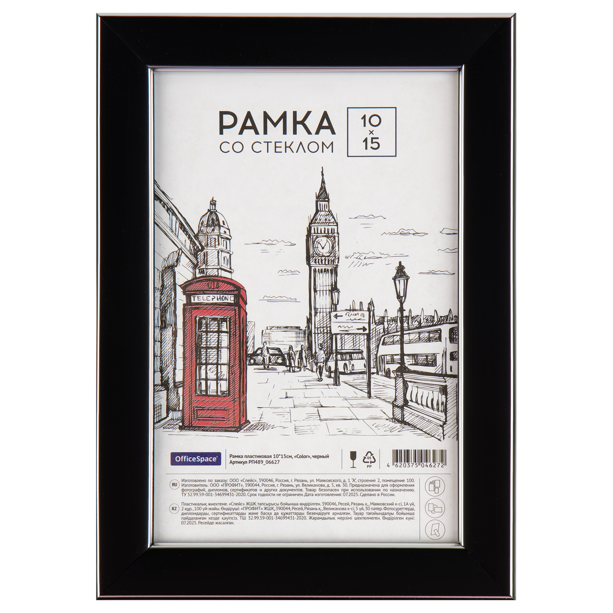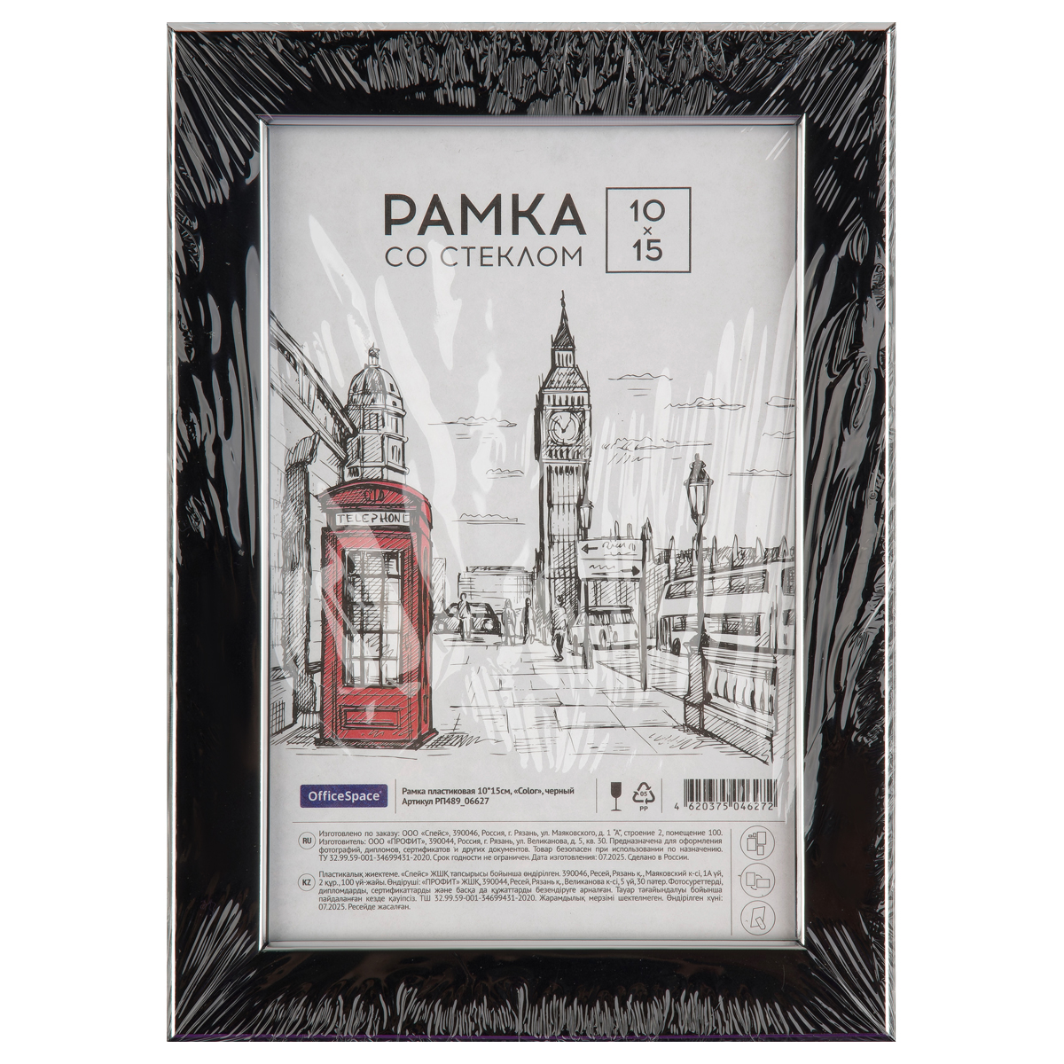 Рамка OfficeSpace Color подчеркнёт общий дизайн помещения и сбережет важные и счастливые моменты из вашей жизни. Подходит как для вертикального, так и для горизонтального размещения. Рамка со стеклом размером 10*15 см изготовлена из ПВХ черного цвета. Оборотная сторона изготовлена из переплётного картона. Предусмотрена ножка для использования на горизонтальных поверхностях. • Тип: рамка; • Размер: 10*15 см; • Материал: ПВХ; • Цвет: черный.