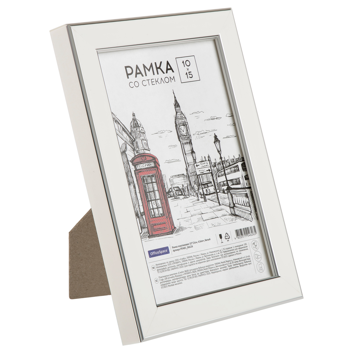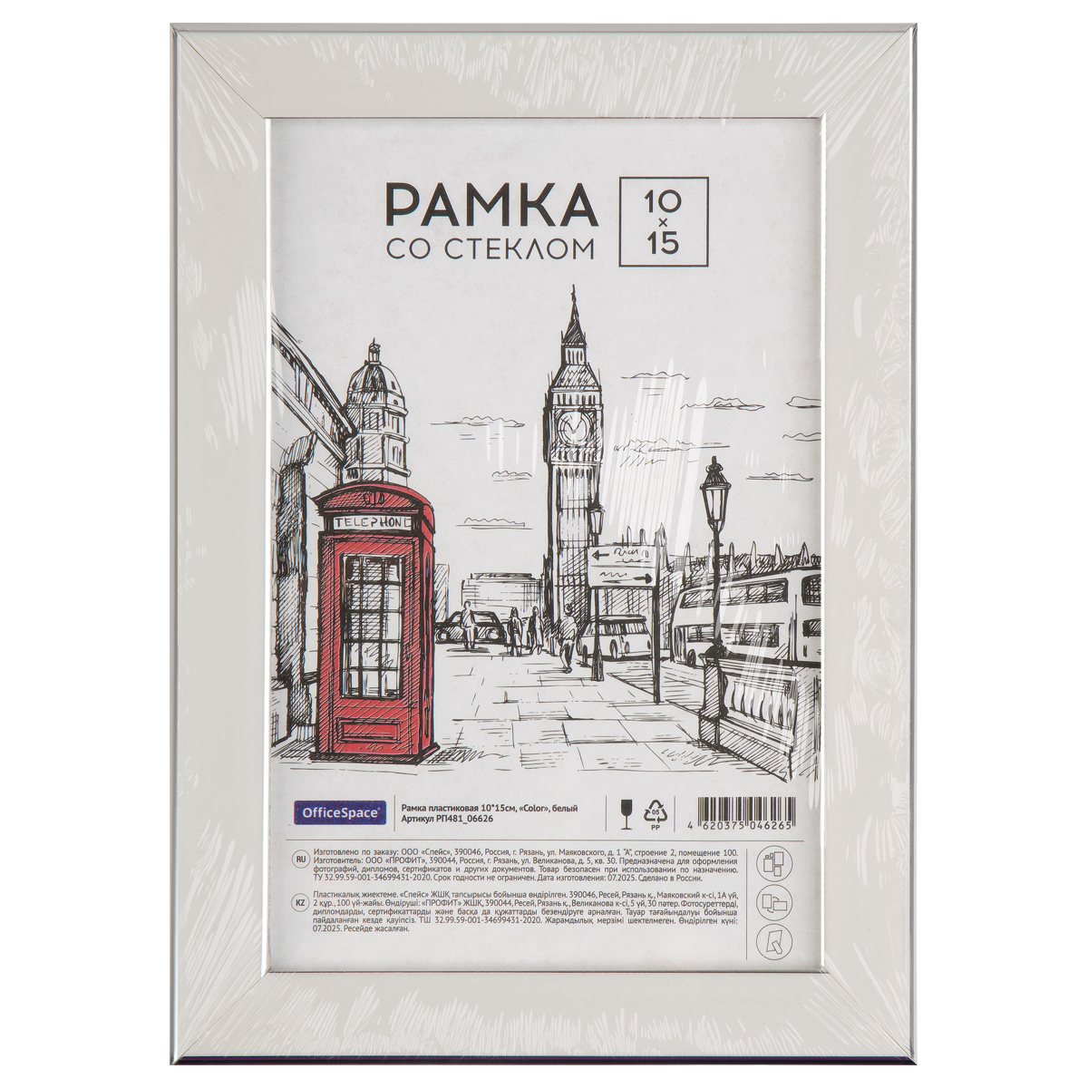 Рамка OfficeSpace Color подчеркнёт общий дизайн помещения и сбережет важные и счастливые моменты из вашей жизни. Подходит как для вертикального, так и для горизонтального размещения. Рамка со стеклом размером 10*15 см изготовлена из ПВХ белого цвета. Оборотная сторона изготовлена из переплётного картона. Предусмотрена ножка для использования на горизонтальных поверхностях. • Тип: рамка; • Размер: 10*15 см; • Материал: ПВХ; • Цвет: белый.