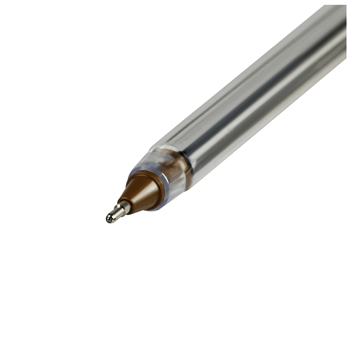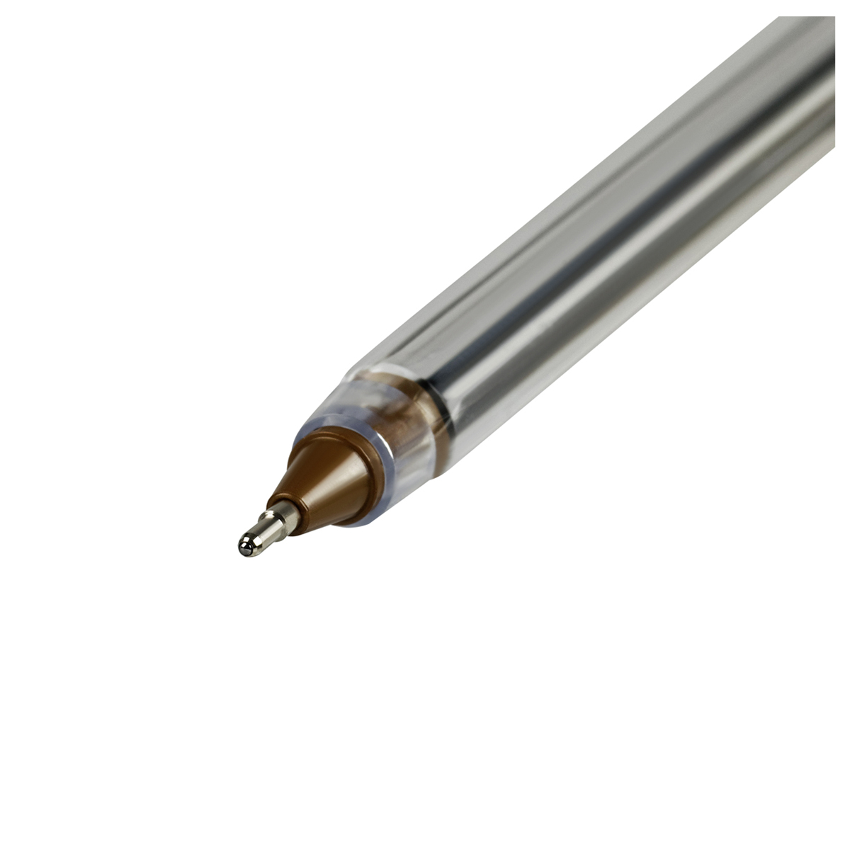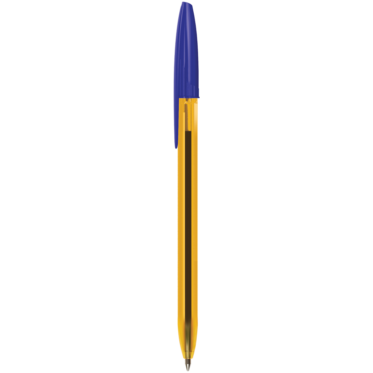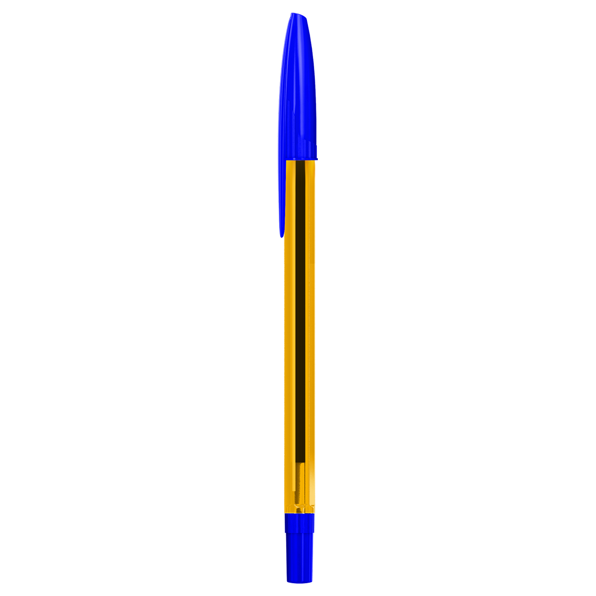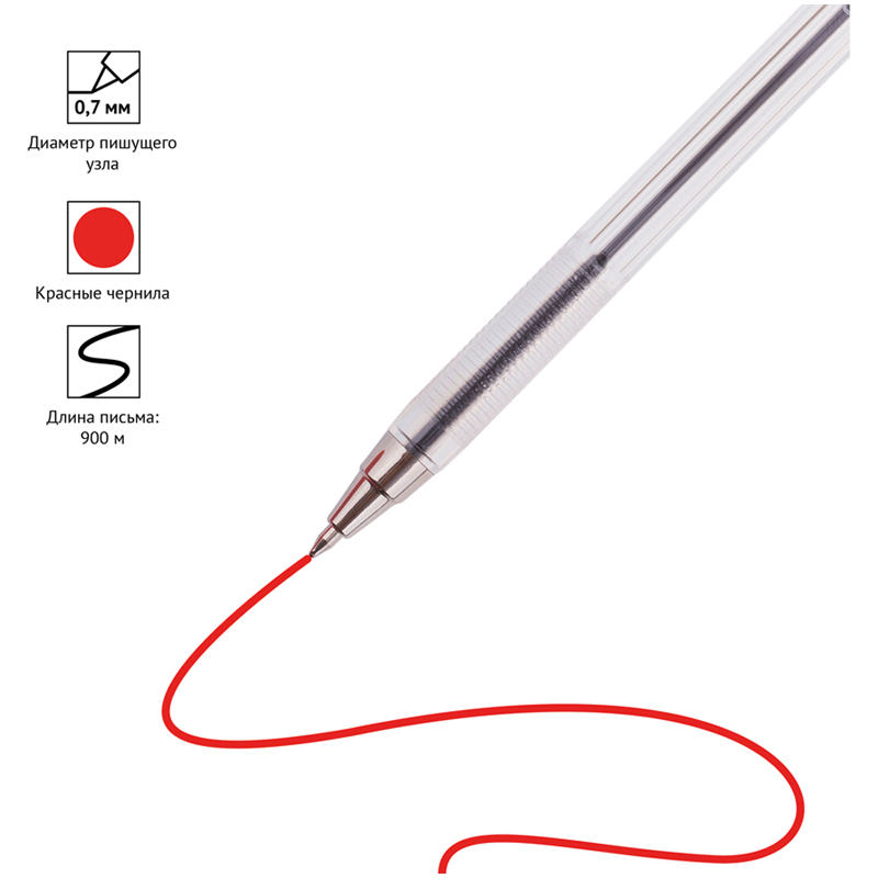 Шариковая ручка с синими чернилами. Толщина линии - 0,5 мм. Корпус ручки - прозрачный пластик. Наличие штрих-кода на корпусе.