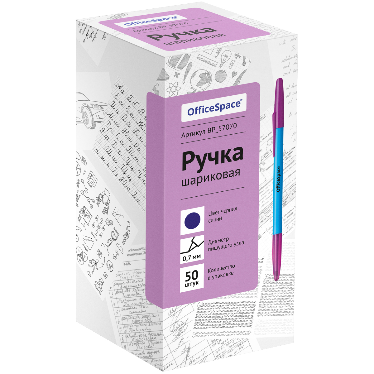 Шариковая ручка OfficeSpace – это залог практичности и удобства. На ручке есть колпачок с клипом – можно закрепить её на одежде или тетради. Цвет чернил – синий. Диаметр пишушего узла составляет 0,7 мм, поэтому ручка подходит для любого стиля письма. • Цвет чернил: синий; • Длина письма: 700 метров; • Толщина линии письма: 0,5 мм; • Материал корпуса: пластик.