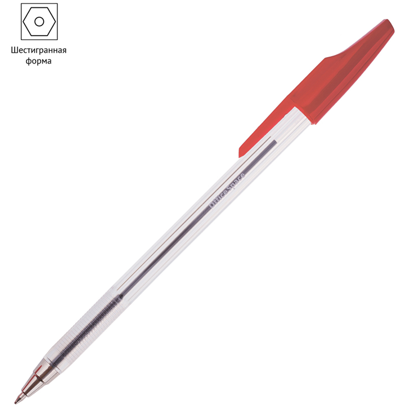 Шариковая ручка OfficeSpace – это залог практичности и удобства. Её удобно держать в руке благодаря шестигранной форме пластикового корпуса. На каждой ручке есть колпачок с клипом – можно закрепить её на одежде или тетради. Цвет чернил – красный. Диаметр пишушего узла составляет 0,7 мм, поэтому ручка подходит для любого стиля письма. • Цвет чернил: красный; • Длина письма: 480-520 метров; • Толщина линии письма: 0,5 мм; • Материал корпуса: пластик.