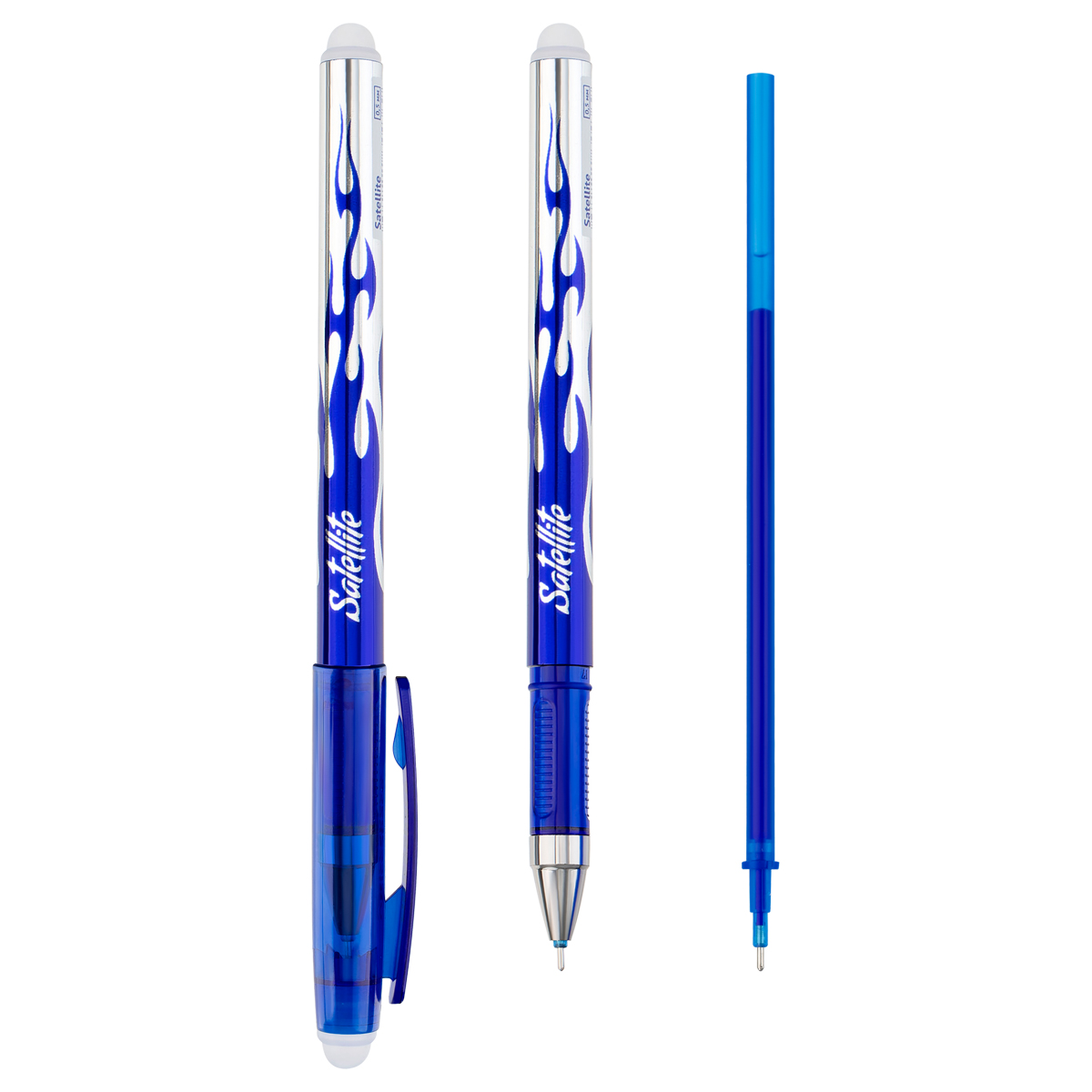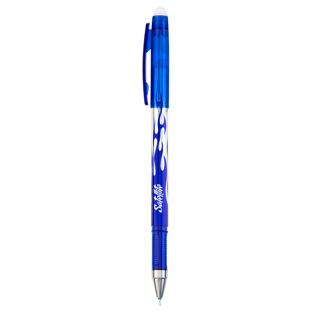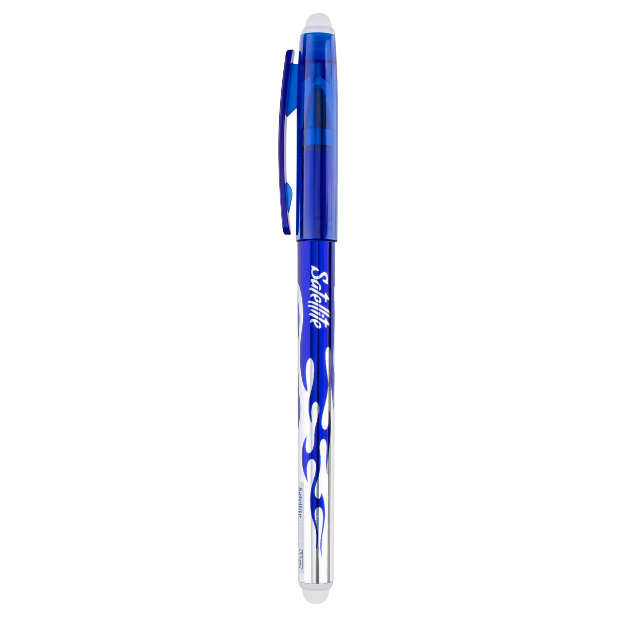Одноразовая стираемая гелевая ручка с колпачком с пластиковым клипом. Удобная трёхгранная форма. Рифление в зоне захвата препятствует скольжению пальцев при письме. Тонированный корпус позволяет контролировать расход чернил. Цвет корпуса соответствует цвету чернил. Качественные гелевые чернила обеспечивают чистое и чёткое письмо. Диаметр пишущего узла - 0,5 мм. Термочувствительные чернила становятся невидимыми при нагревании до 60°С и выше. Нагрев достигается трением встроенным в торцевой элемент ластиком. Обесцвеченные чернила проявляются при температуре ниже -18°С . Возможность многократного стирания и написания текста. Количество циклов написания/стирания ограничено износостойкостью бумаги.