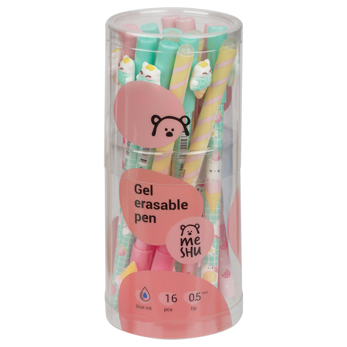 Гелевая ручка MESHU – это яркий дизайн с уникальными стираемыми чернилами. Диаметр пишущего узла: 0,5 мм. Благодаря этому получается тонкая и аккуратная линия. Милый корпус с дизайнами представлен в четырёх цветах. Гелевые чернила не только ярко пишут на бумаге, но и при воздействии температуры становятся невидимыми – достаточно потереть написанное ластиком на кончике ручки. Обесцвеченные чернила проявляются при низкой температуре. Колпачок с клипом позволяет закрепить ручку на одежде или тетради. • Тип чернил: гелевый стержень; • Цвет: синий; • Тип стирания: при нагревании; • Диаметр пишущего узла: 0,5 мм; • Форма корпуса: круглая.
