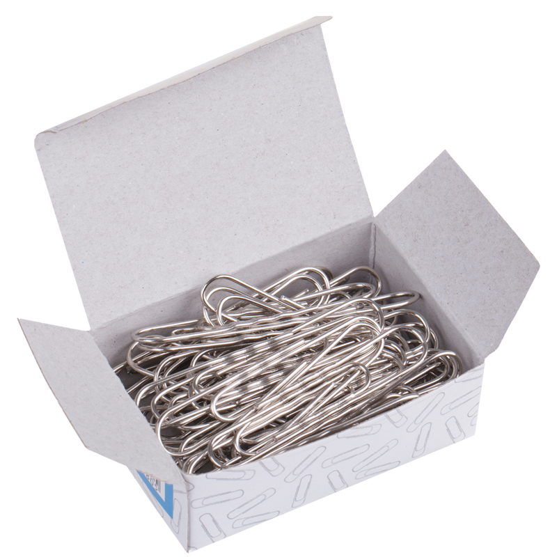 Никелированные канцелярские скрепки овальной формы. Отличный инструмент для работы с документами, не пачкают и не деформируют бумагу, не ржавеют, надежно скрепляют документы. Упакованы в картонную коробку по 50 шт. Длина - 50 мм.