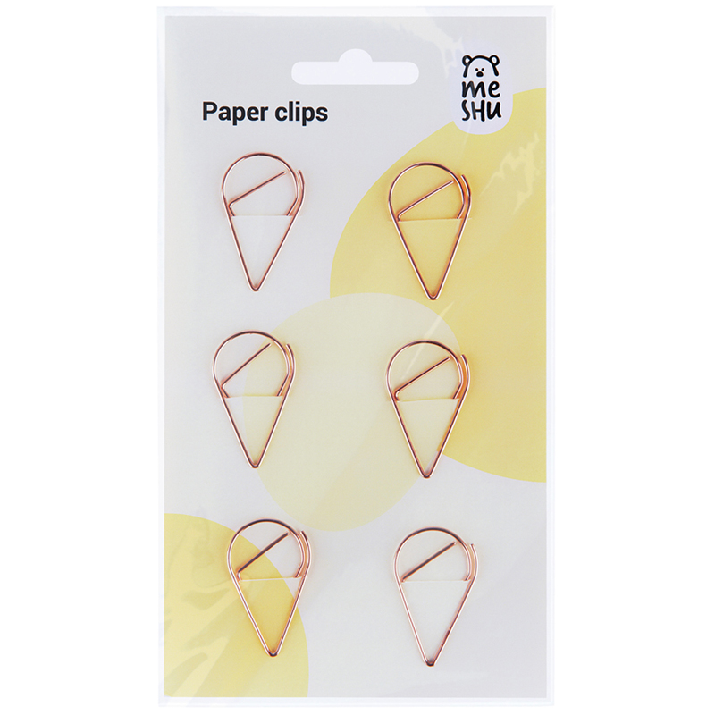 Фигурные скрепки Meshu "Drops" идеально подходят для надежного скрепления бумаг. Не пачкают бумагу