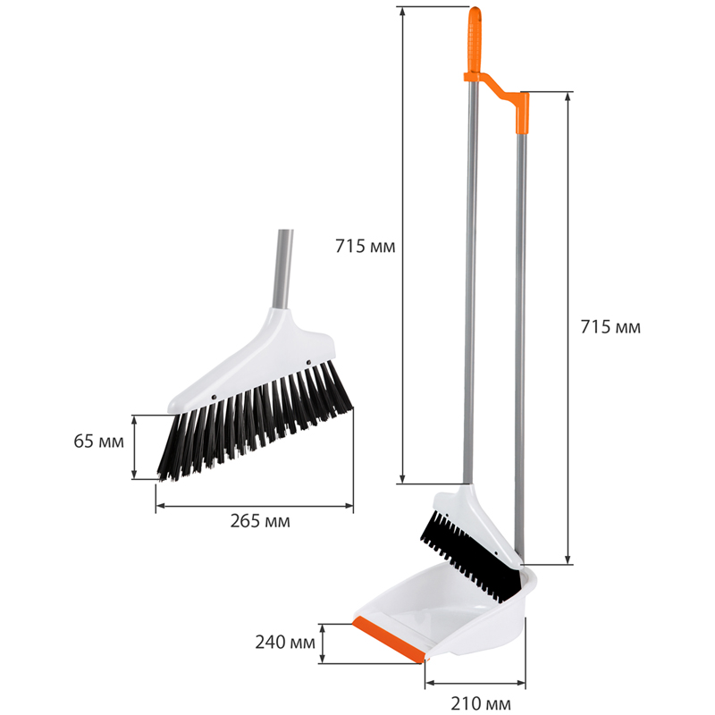 Совок для мусора OfficeClean Professional со щеткой сметкой предназначен для уборки мусора на улице и в помещении. Выполнен из прочного пластика. Хорошо собирает мусор за счет резиновой кромки плотно прилегающей к поверхности. Щетка имеет удобную форму и длинный ворс, что позволяет вымести мусор даже из труднодоступных мест. Щетина сметки распушённая и прочно держится в основании. На нижней поверхности совка прикреплены 2 колёсика для защиты пола от царапин и для придания большей легкости, маневренности при использовании. Совок и щетка имеют специальную конструкцию ручек, которые крепятся друг к другу - это дает возможность для компактного хранения и транспортировки набора. Материал совка: пластик, резина. Материал основы щетки: пластик. Материал щетины: синтетическое моноволокно. Материал ручки совка: металл. Материал ручки щетки-сметки: пластик. Длина ручки совка: 64 см. Длина ручки щетки-сметки: 69 см. Размер совка: 28 х 27 х 8,5 см. Ширина щетки: 28 х 15 см.