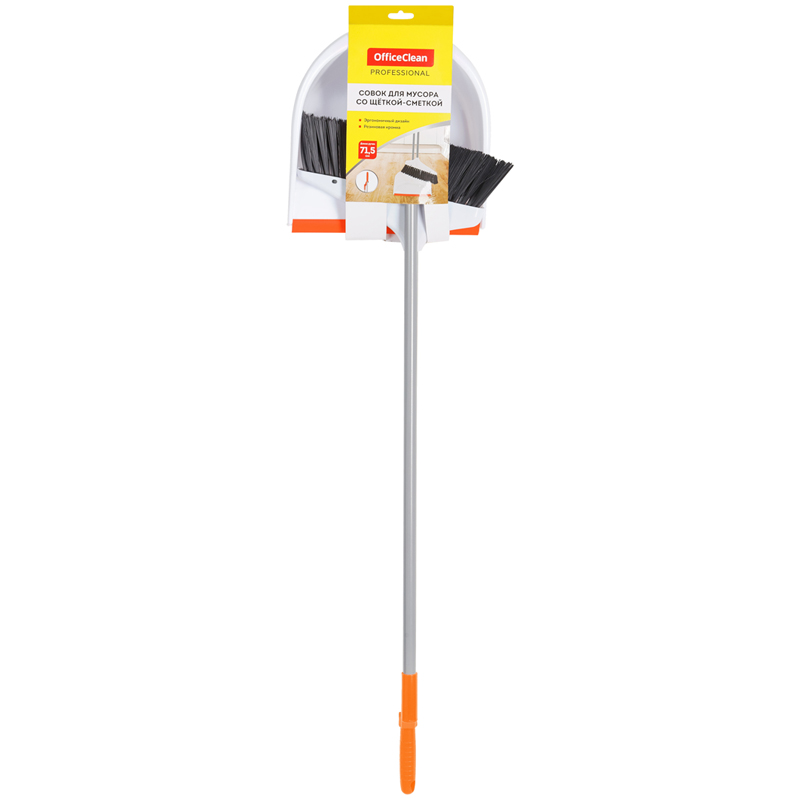 Набор для уборки OfficeClean Professional - совок и сметка на длинных ручках 70см. Резиновая кромка плотно прилегает к полу. Щетка-сметка крепится к совку.