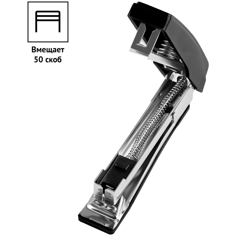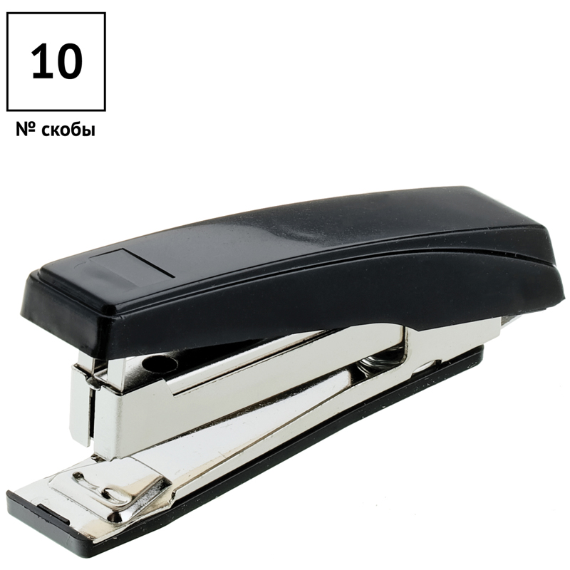 Компактный степлер чёрного цвета имеет встроенный металлический антистеплер и скрепляет до 7 листов. Вмещает до 50 скоб № 10. Механизм скрепления выполнен из прочного металла, а корпус – из пластика. • Номер скобы: 10; • Количество скрепляемых листов: 7; • Материал корпуса: пластик.
