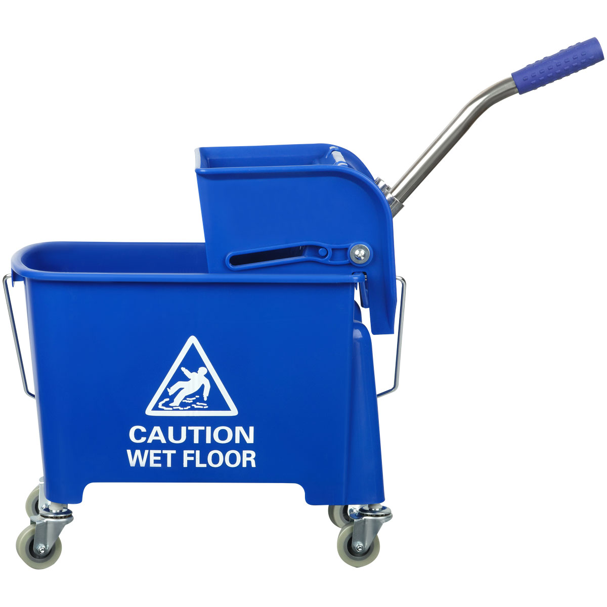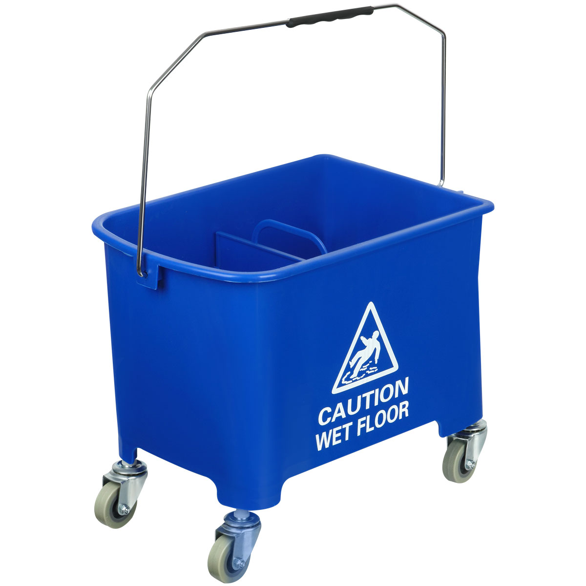 Ведро пластиковое, объем 20л, с перегородкой на 2 секции, перекидная метал. ручка, стальные поворотные колеса, механический отжим для петельных тряпок и МОПов. Для тележки подходят швабры: 265261 + 265262, 266773 и насадки 271110, 271107, 271108, 271109, 303275, 303089 в комплекте с рукоятками/черенками 303092 и 303272.