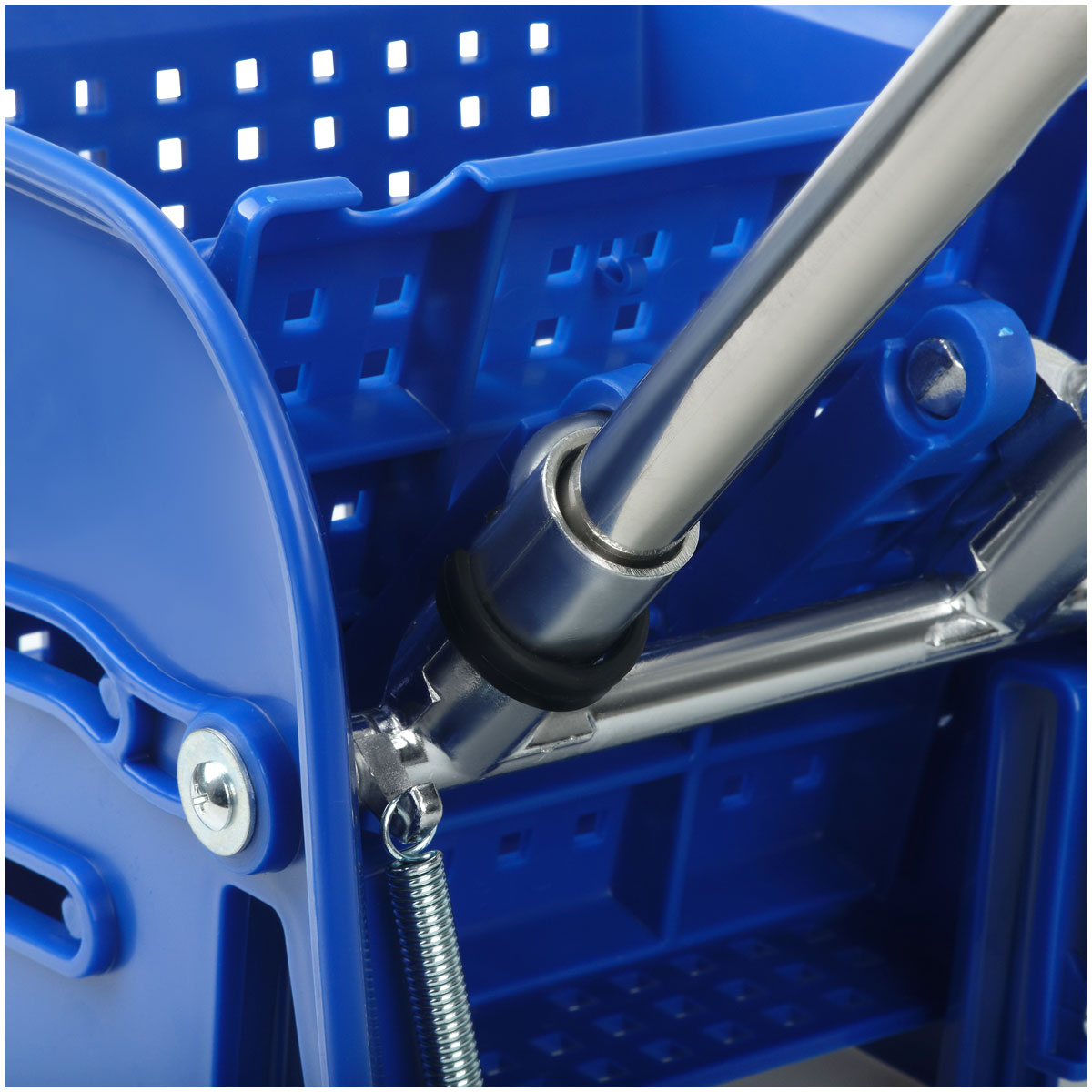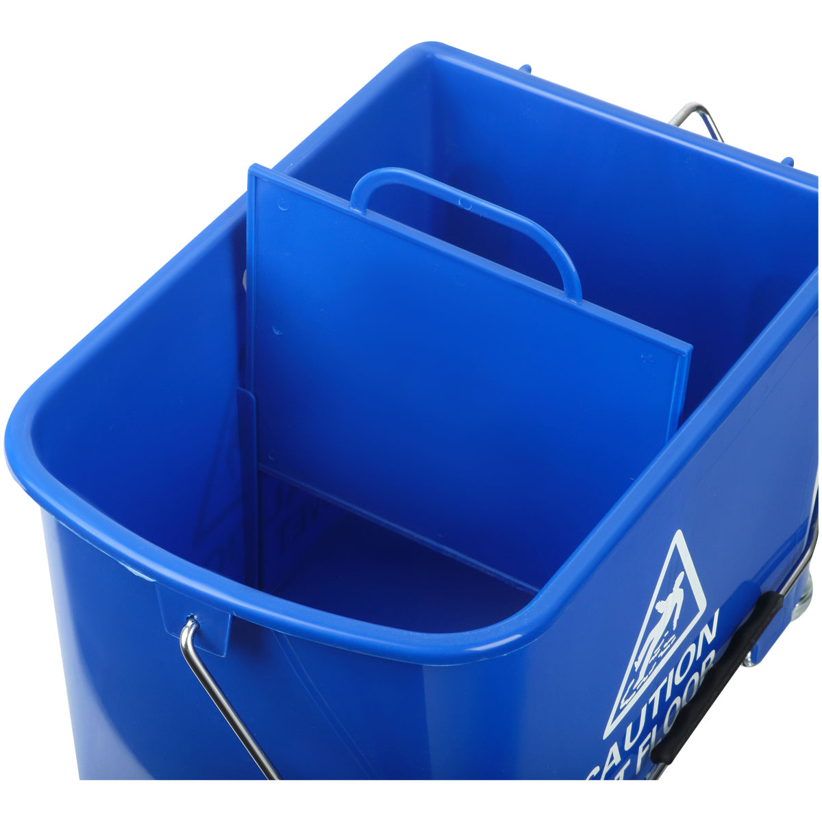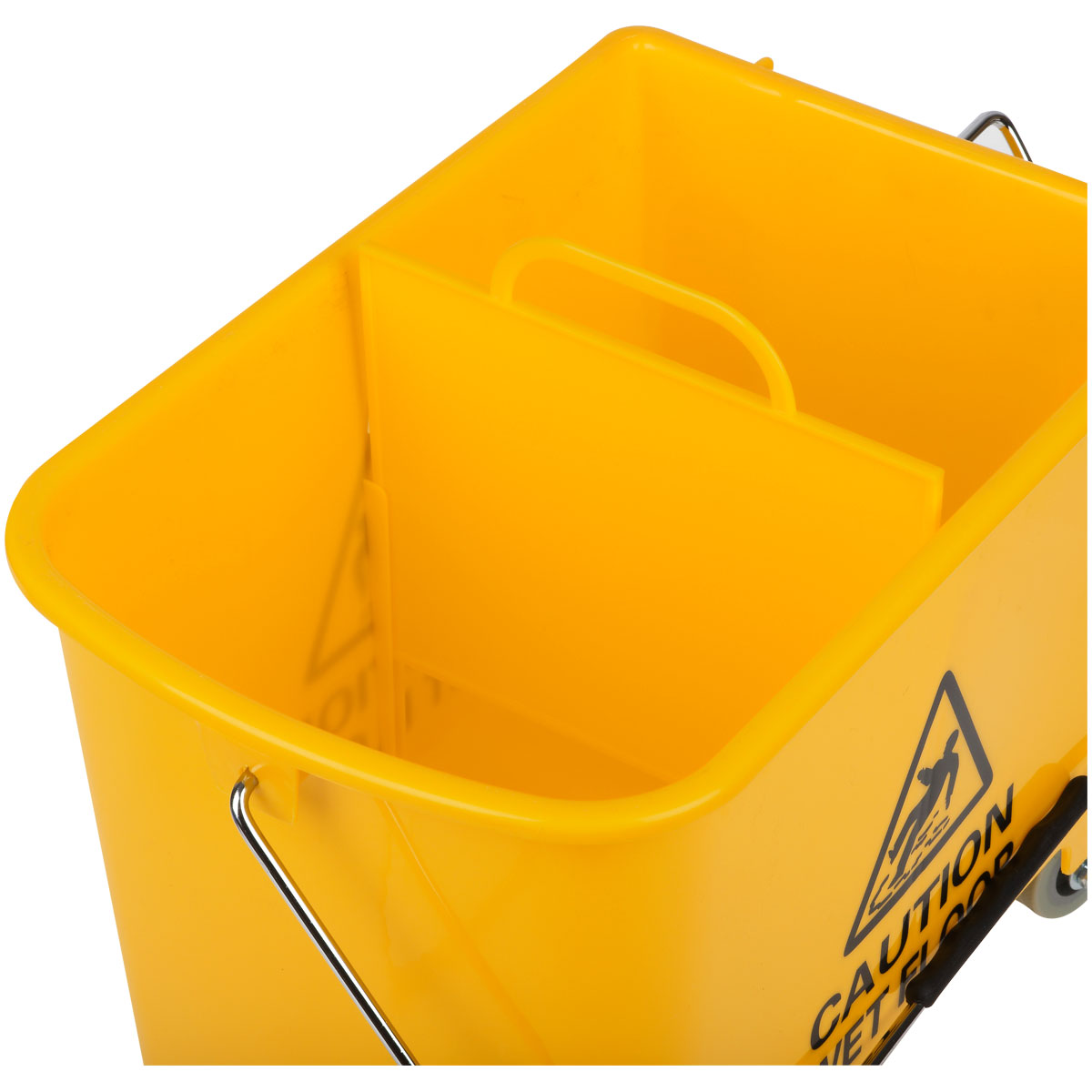 Ведро пластиковое, объем 20л, с перегородкой на 2 секции, перекидная метал. ручка, стальные поворотные колеса, механический отжим для петельных тряпок и МОПов.