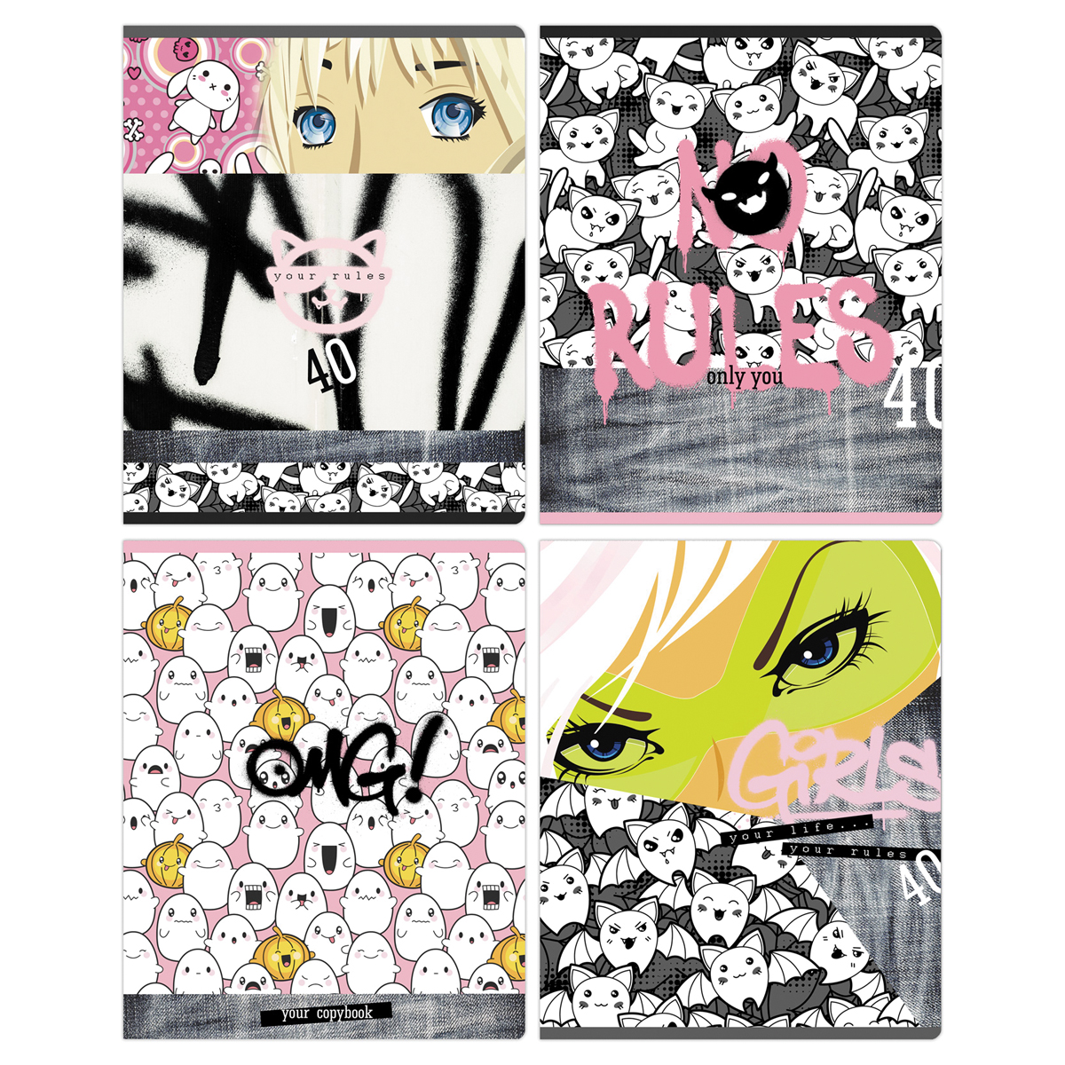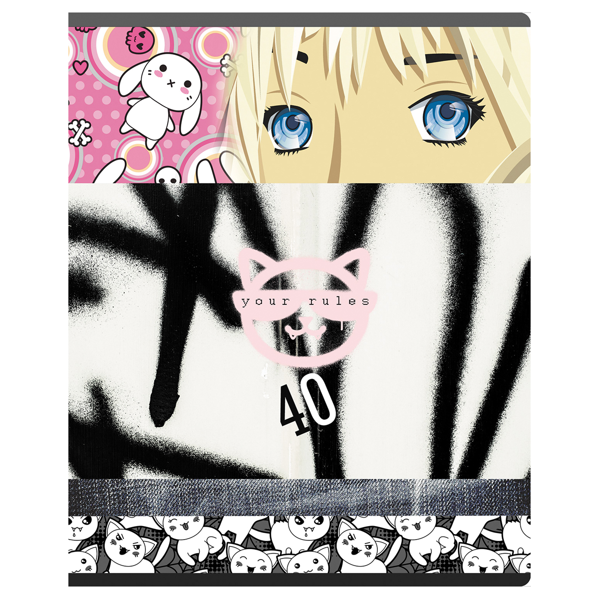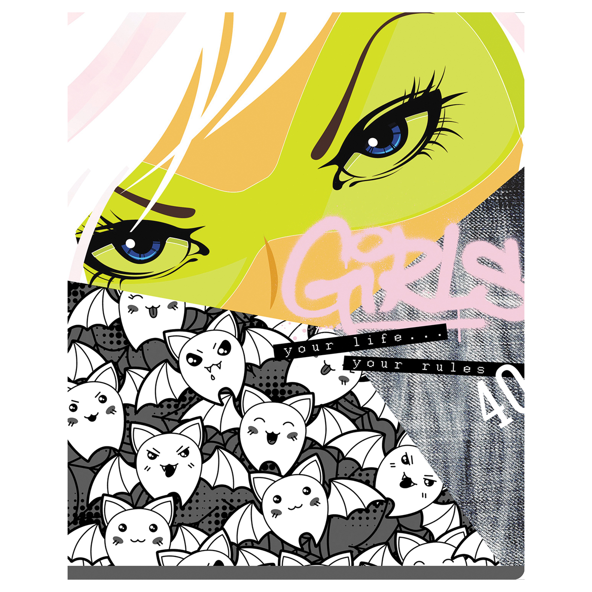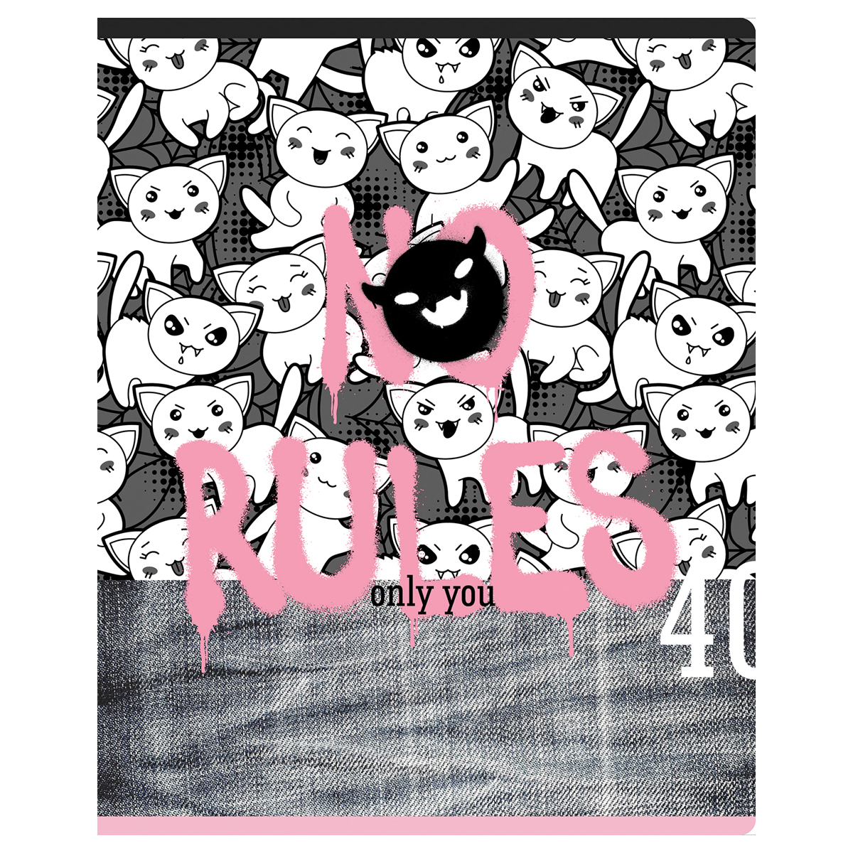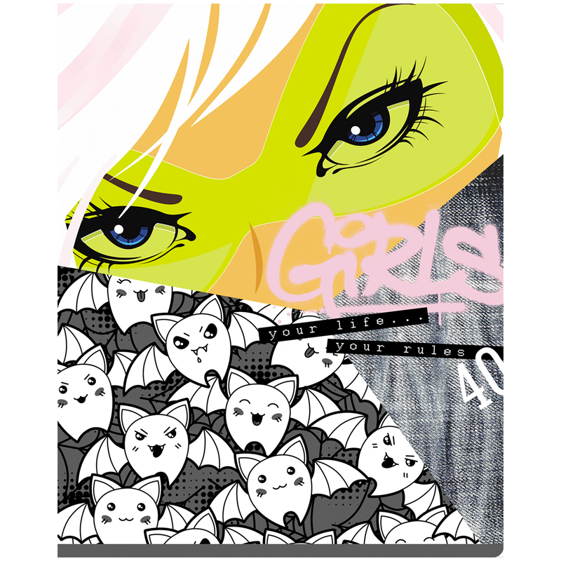 Тетрадь BG серии "No rules" в клетку. Формат А5 (165*205 мм). Вид крепления – скрепка. Внутренний блок – это 40 листов, офсетная бумага плотностью 60 г/м². Обложка выполнена из мелованного картона с выборочным лаком. Тетради с креативным дизайном отлично подходят для выполнения классных и домашних работ. • Кол-во листов: 40 л; • Линовка: клетка; • Белизна: 100%; • Плотность блока: 60 г/м²; • Материал обложки: мелованный картон.