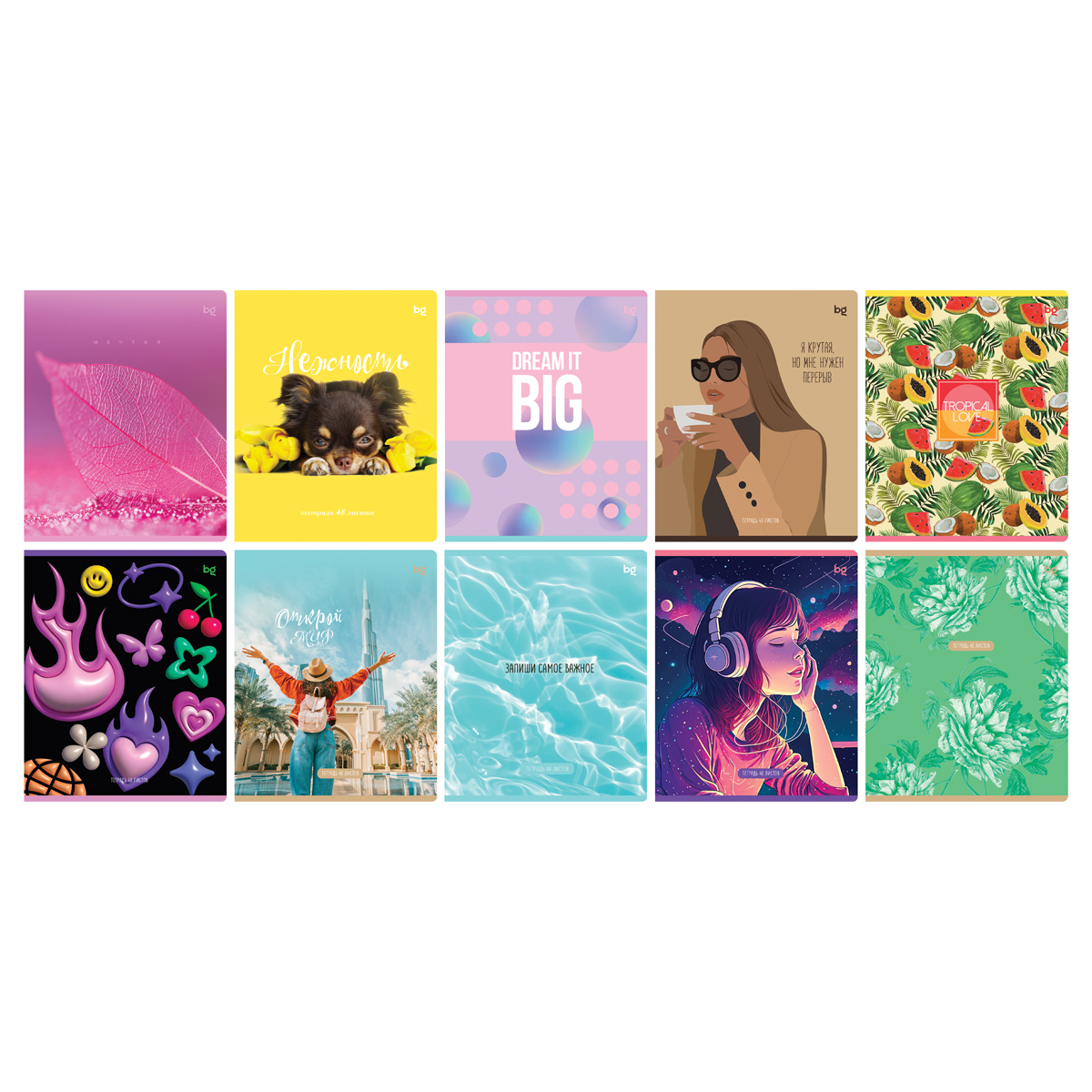 Тетрадь BG серии в клетку. Формат А5 (165*205 мм). Вид крепления – скоба. Внутренний блок – это 48 листов, офсетная бумага плотностью 60 г/м². Обложка выполнена из мелованного картона. Тетради с креативным дизайном отлично подходят для выполнения домашних и контрольных работ