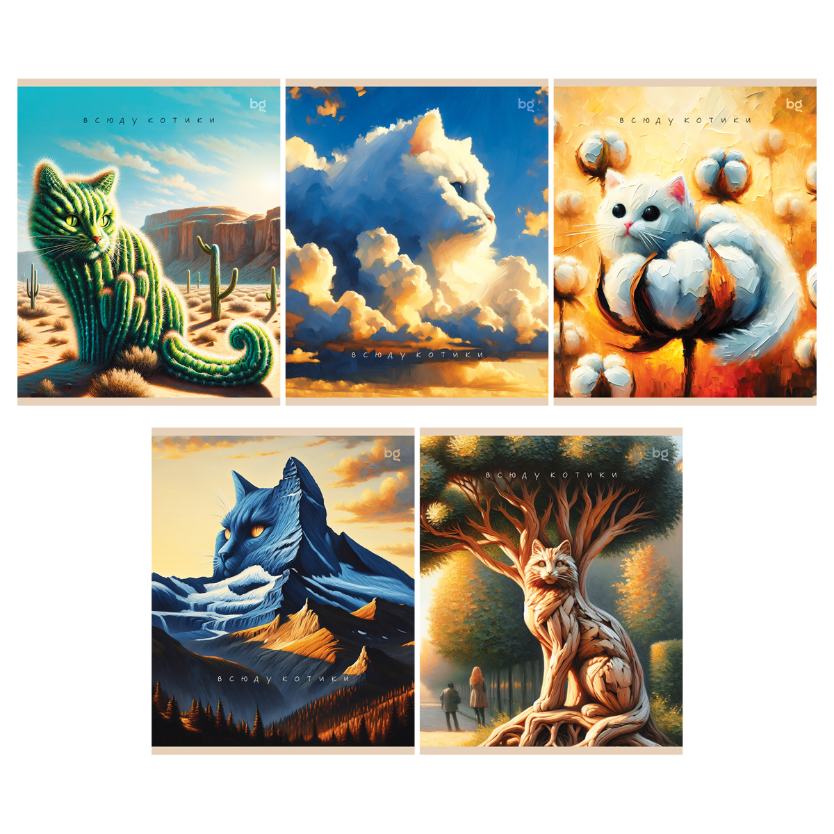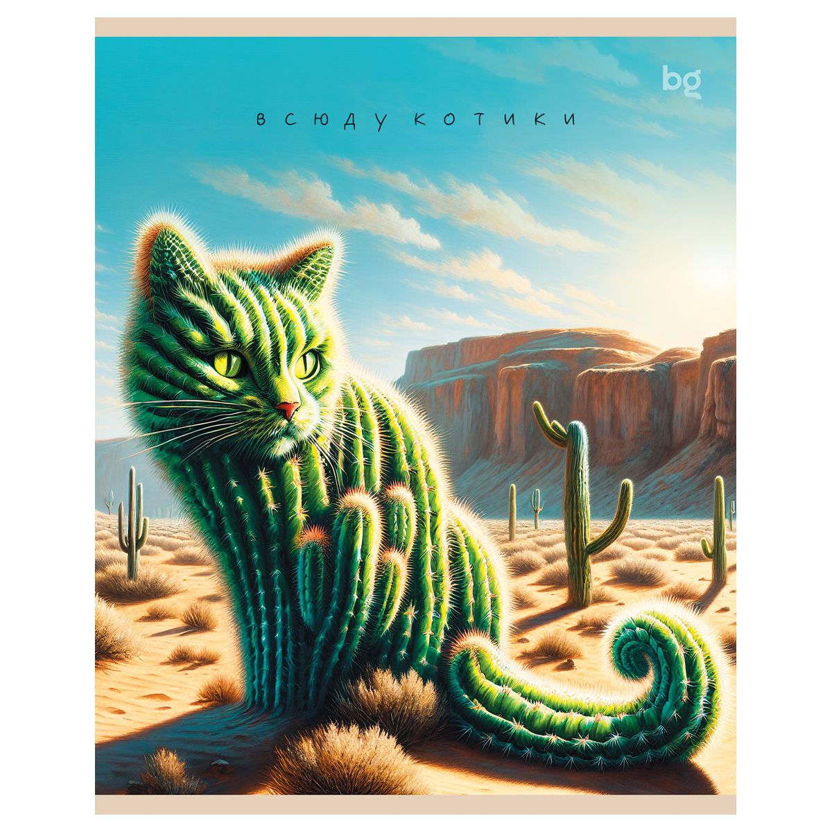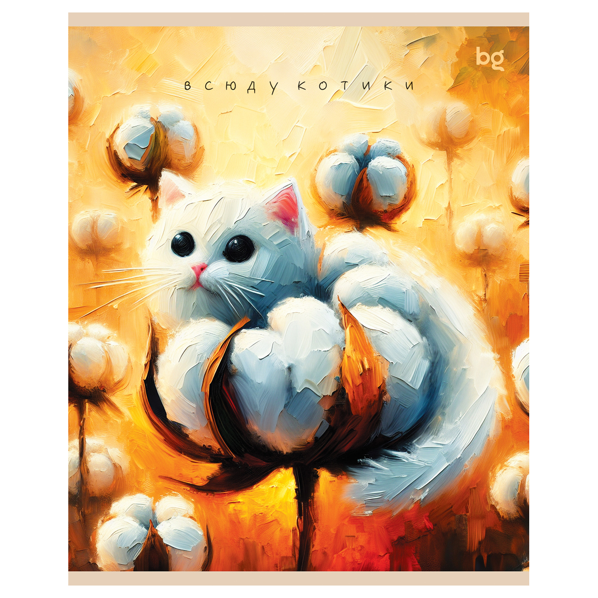 Тетрадь BG серии Котики. Формат А5 (165*205 мм). Вид крепления – скрепка. Внутренний блок – это 48 листов, офсетная бумага плотностью 60 г/м². Обложка выполнена из мелованного картона. Тетради с креативным дизайном отлично подходят для выполнения домашних и контрольных работ. • Кол-во листов: 48 л; • Линовка: клетка; • Белизна: 90%; • Плотность блока: 60 г/м²; • Материал обложки: мелованный картон.