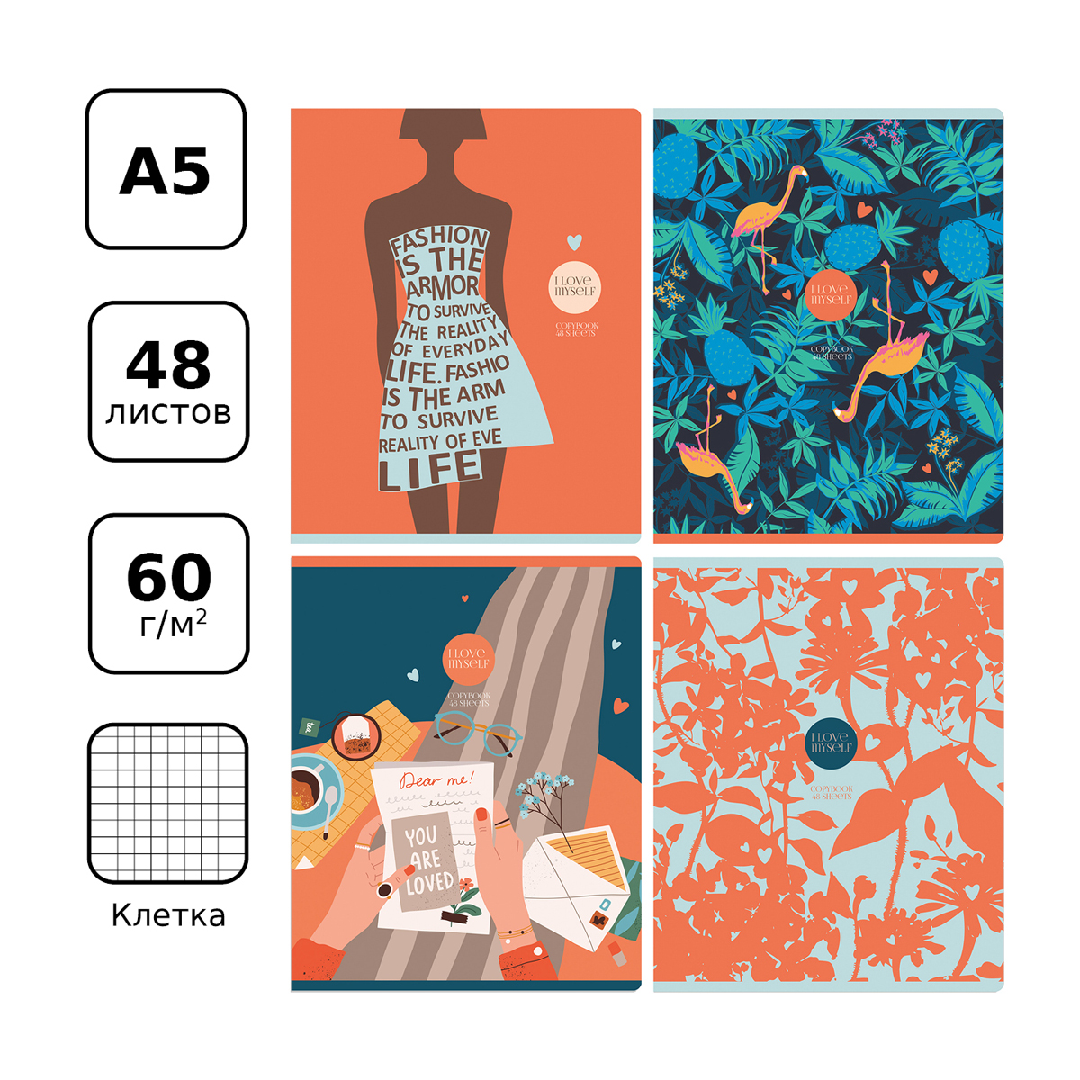 Тетрадь BG серии Люблю себя в клетку. Формат А5 (165*205 мм). Вид крепления – скрепка. Внутренний блок – это 48 листов, офсетная бумага плотностью 60 г/м². Обложка выполнена из мелованного картона. Тетради с креативным дизайном отлично подходят для выполнения домашних и контрольных работ. • Кол-во листов: 48 л; • Линовка: клетка; • Белизна: 90%; • Плотность блока: 60 г/м²; • Материал обложки: мелованный картон.