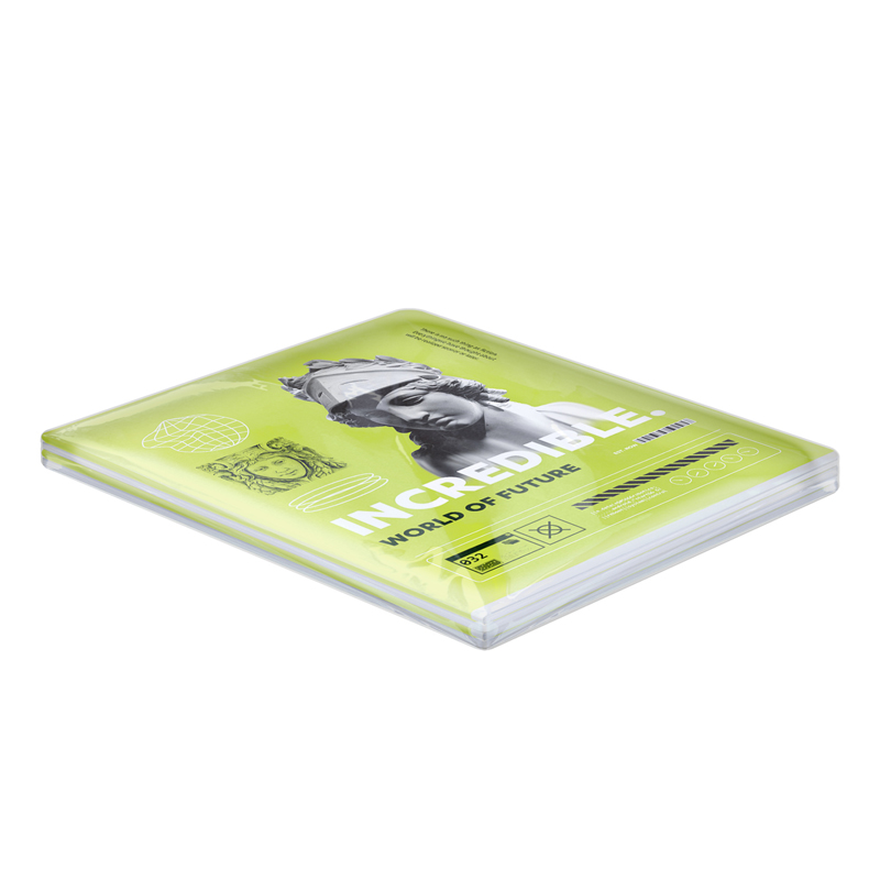 Тетрадь общая 48 л. на скобе, формата А5 (165*205 мм). Внутренний блок – офсетная бумага повышенной плотности 70 г/м², белизна 100%, клетка. Обложка изготовлена из импортного целлюлозного мелованного картона с двусторонней запечаткой.