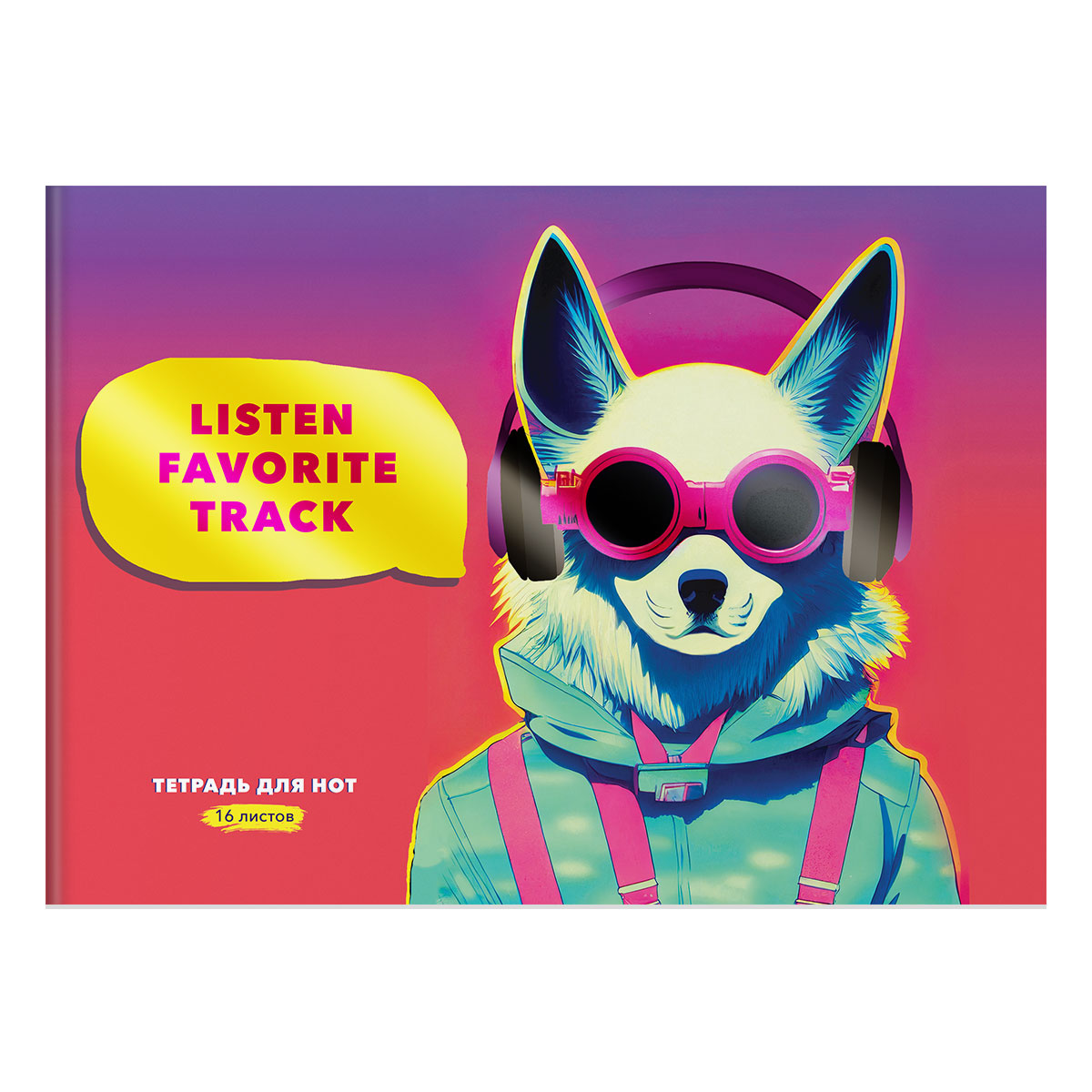 Тетрадь для нот 16л., А4, на скрепке BG "Musical animals", выборочный УФ-лак, (гориз.) ТН4ск16 12432