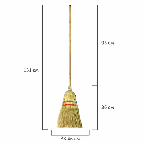 ХИТ продаж. Отличная метла для уборки во дворе, на открытой террасе. Износоустойчивая, удобная в использовании. Незаменима в саду, отлично справляется с уборкой песка и листьев. Состав: солома сорго, дерево, проволока, синтетическая нить. Размеры: 138х22х6 см.