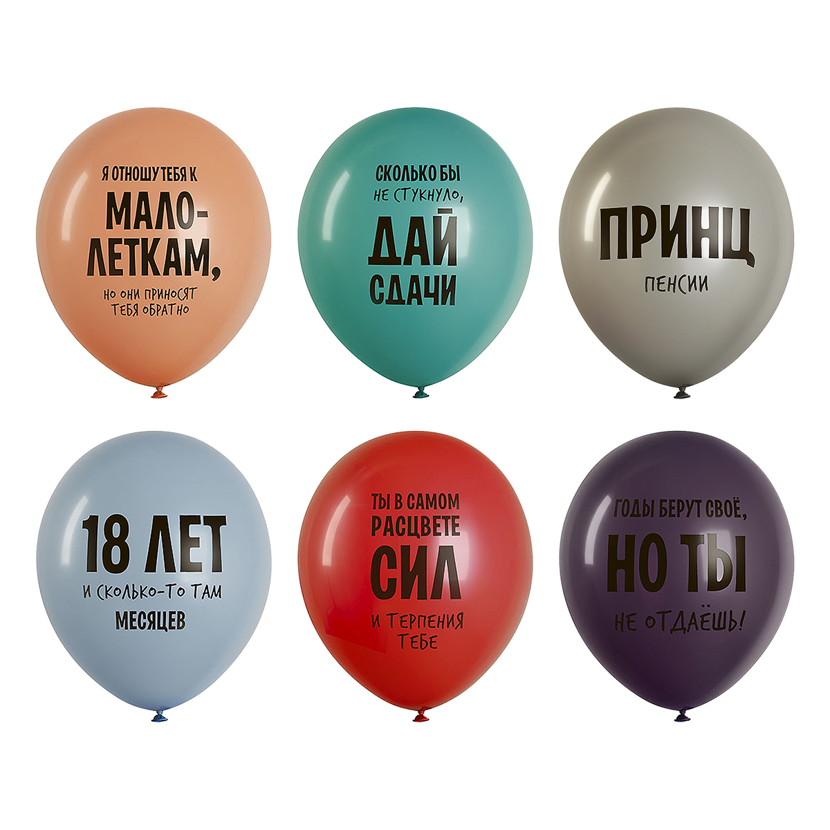 Оригинальные поздравительные шары со смешными надписями. Подойдут и для девушек, и для юношей.
