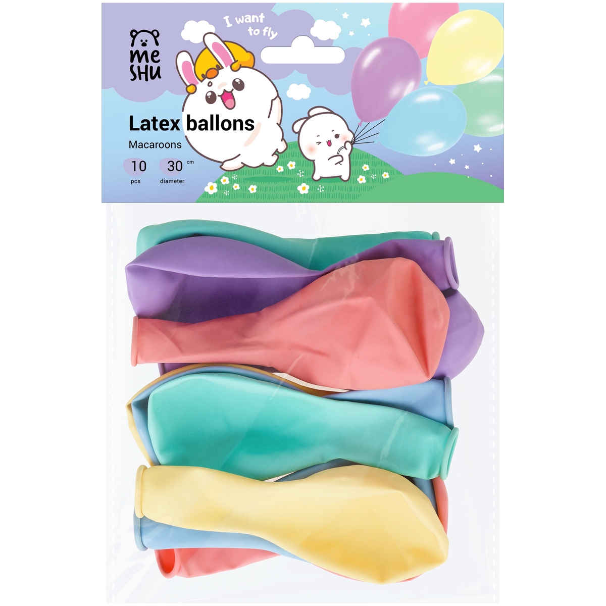 Набор воздушных шаров MESHU поможет оформить помещение для проведения тематической вечеринки, детского праздника. Изделия также подойдут в качестве дополнения к подарку имениннику. В мини-набор входят 10 шариков в пастельных оттенках с рисунками. Размер изделия — 30 см. Шарики сделаны из натурального латекса, поэтому не имеют неприятного химического запаха. Набор упакован в яркий индивидуальный пакет с европодвесом. Дизайн упаковки с милыми персонажами поможет обратить внимание покупателей на товар. Поставляется в ненадутом виде. • Материал: натуральный латекс; • Размер: 30 см; • Цвет: ассорти; • Индивидуальная упаковка: пакет с европодвесом.